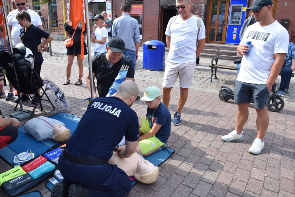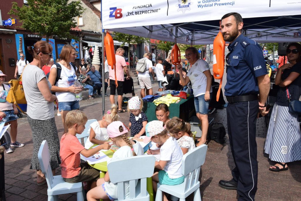 Ekspozycja sprzętu pożarniczego i ratowniczego przykuwała uwagę nie tylko tych najmłodszych, ale i dorosłych. Policyjny ratownik wraz z instruktorem Poszukiwawczego Ochotniczego Pogotowia Ratunkowego w Gdyni instruowali gości w zakresie podstawowych zabiegów ratujących życie oraz obsługi automatycznego defibrylatora zewnętrznego. Podczas wydarzenia policjanci przekazywali dzieciom i dorosłym podstawowe zasady bezpieczeństwa podczas korzystania z kąpieli wodnych oraz wyjaśniali jakie zagrożenie dla środowiska naturalnego niesie za sobą pozostawianie zanieczyszczeń w lasach, na plażach i w wodzie.