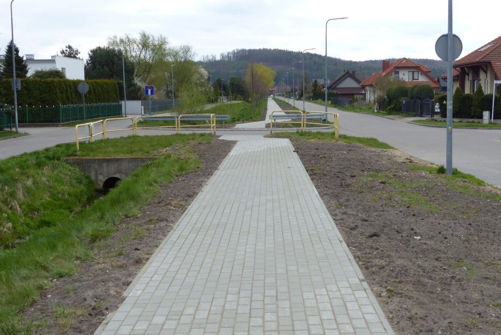 Wnioskowany przez mieszkańców chodnik od strony ulicy Spółdzielczej przebiega wzdłuż kanału i oddzielony jest od jezdni pasem zieleni. Dla poprawy bezpieczeństwa pieszych przy przejściu przez jezdnie postawiono dodatkowe bariery drogowe.