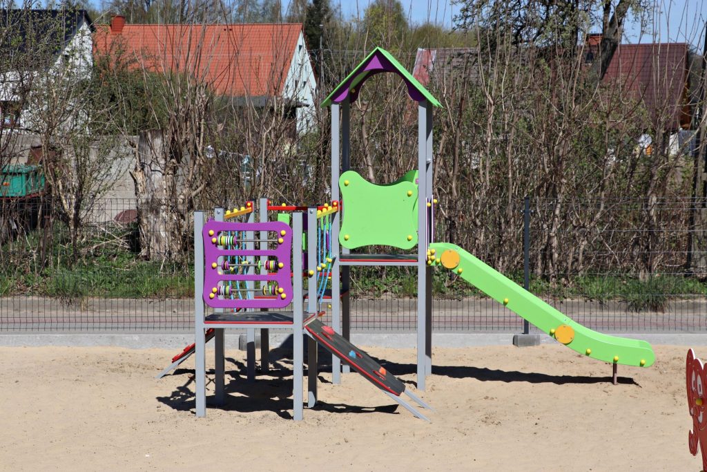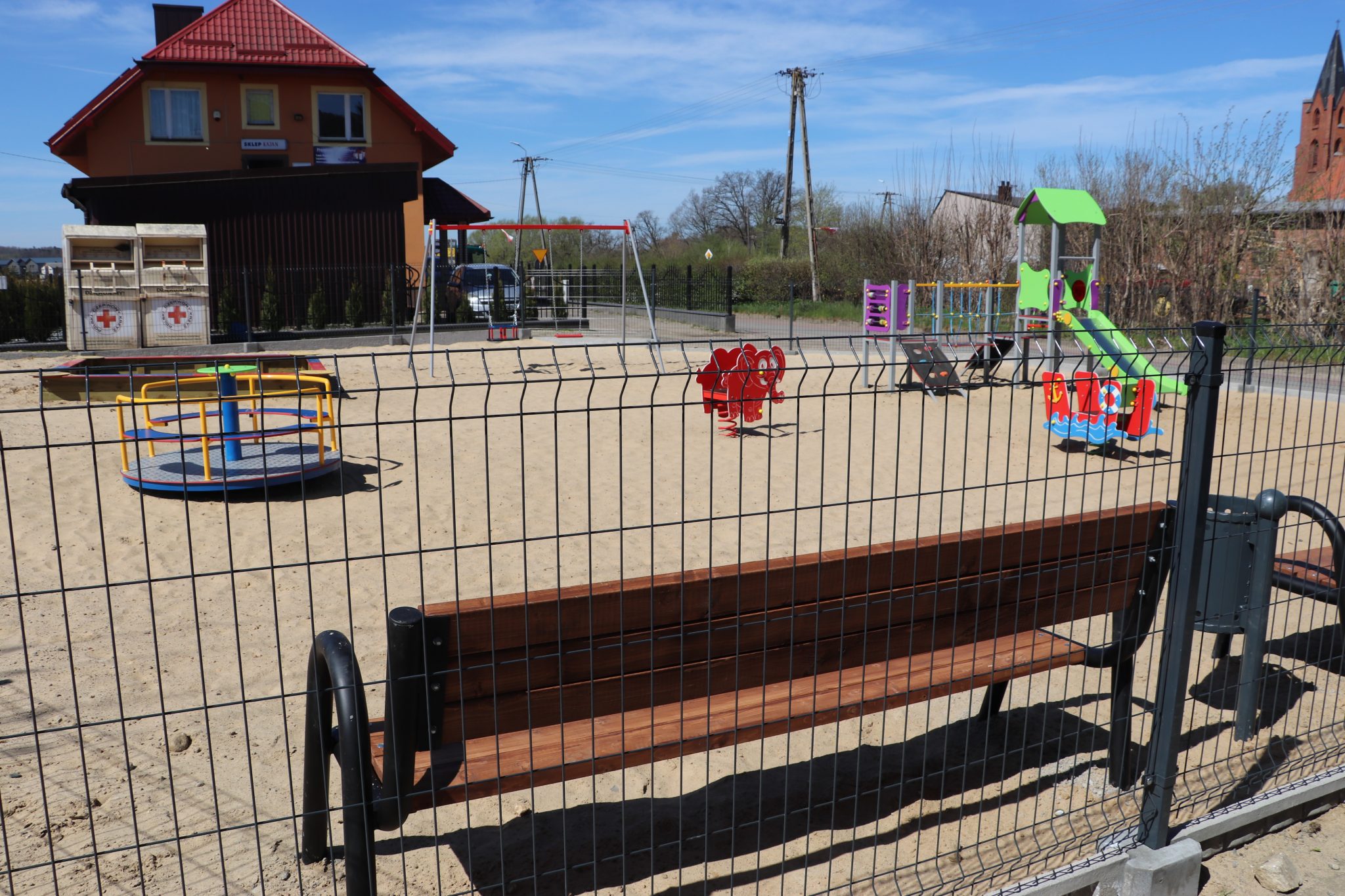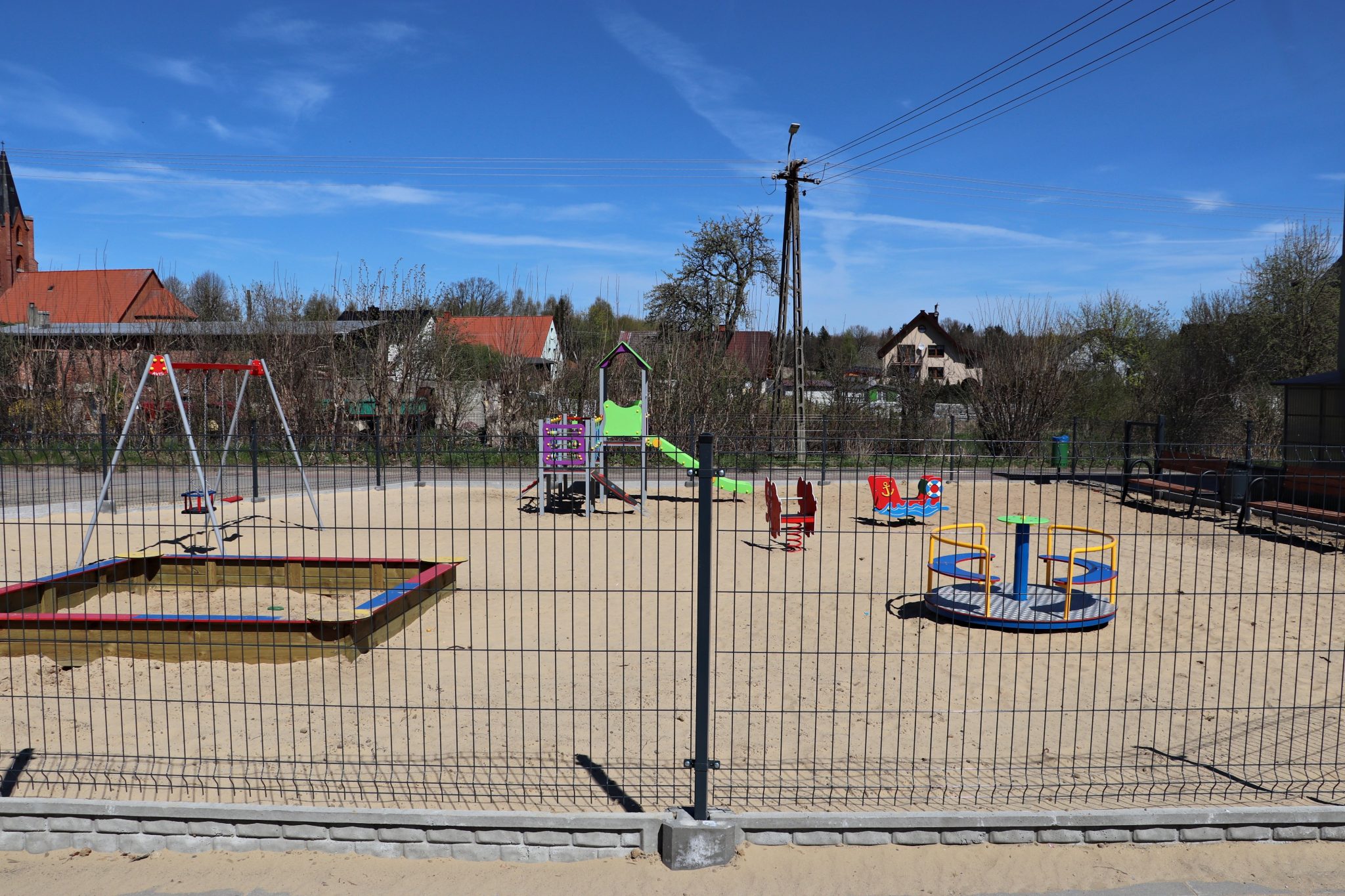 Dla bezpieczeństwa dzieci nawierzchnia placu pokryta została piaskiem. Plac zabaw został ogrodzony bezpiecznym ogrodzeniem z paneli oraz furtką uniemożliwiającą niekontrolowane wejście zwierząt na teren obiektu. Modernizując plac nie zapomniano o opiekunach najmłodszych montując kilka ławek i kosze na śmieci. Plac zabaw został sfinansowany z budżetu gminy, jego koszt wyniósł 38 tys. zł.