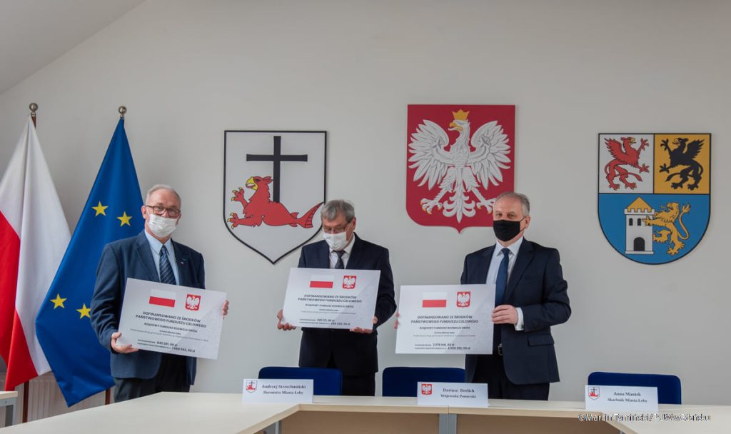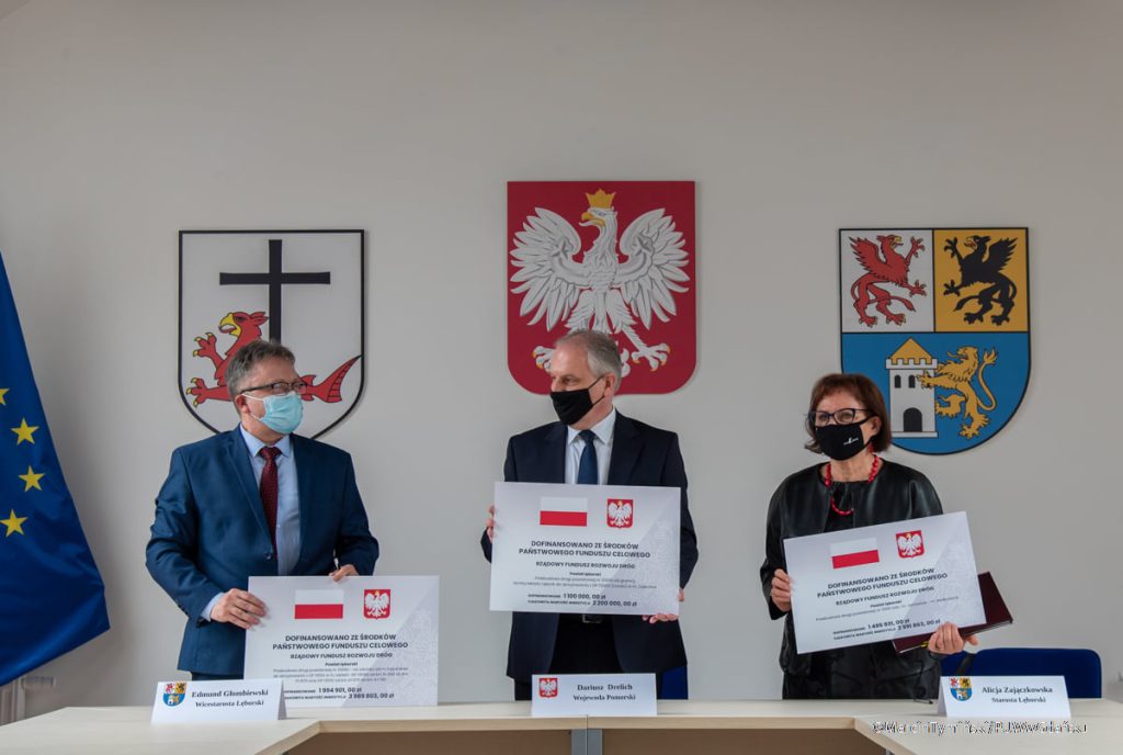 W Urzędzie Miejskim w Łebie samorządowcy powiatu lęborskiego podpisali z wojewodą pomorskim Dariuszem Drelichem umowy na dofinansowanie w ramach Funduszu Rozwoju Dróg 2021. Kwota 12.252.428 zł wesprze realizację ośmiu inwestycji.