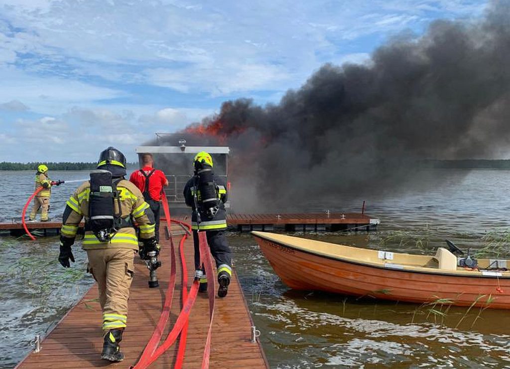 Do niebezpiecznego pożaru doszło 23 czerwca na jeziorze Sarbsko niedaleko Łeby. Zapalił się katamaran zacumowany przy pomoście.