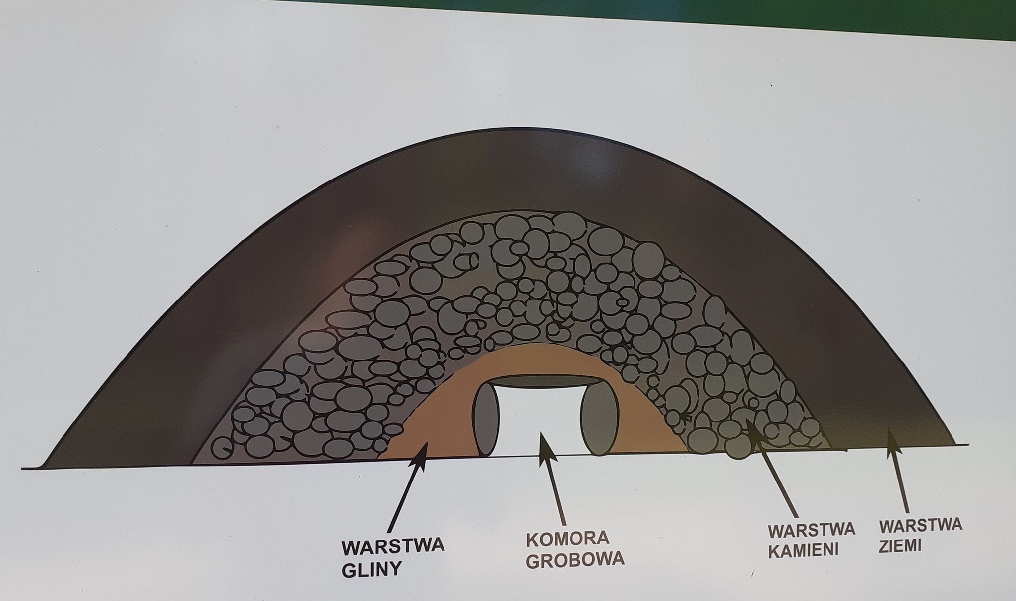 Kurhany miały w większości w rzucie poziomym kształt kolisty lub do niego zbliżony o średnicy od 5 do 10 m. Największy kurhan miał średnicę 18 m. Maksymalna wysokość kurhanów dochodziła do 1,5 m. Kolisty kształt kurhanów osiągnięto przez układanie u ich podstawy kręgów z dużych, ściśle przylegających do siebie kamieni. Podstawę stanowiły przeważnie pojedyncze kręgi. W ich środku znajdowały się skrzynie zbudowane z płasko łupanych kamieni. Nad skrzyniami, w granicach kręgu usypywano płaszcz z kamieni polnych. We wnętrzu skrzyń stały popielnice i naczynia gliniane pełniące funkcję przystawek oraz przepalone ludzkie kości. Towarzyszyły im nierzadko wyroby metalowe, najczęściej biżuteria oraz przedmioty użytku codziennego zmarłego. Dna skrzyń wyłożone były płaskimi kamieniami.