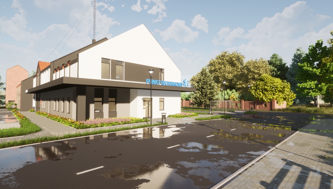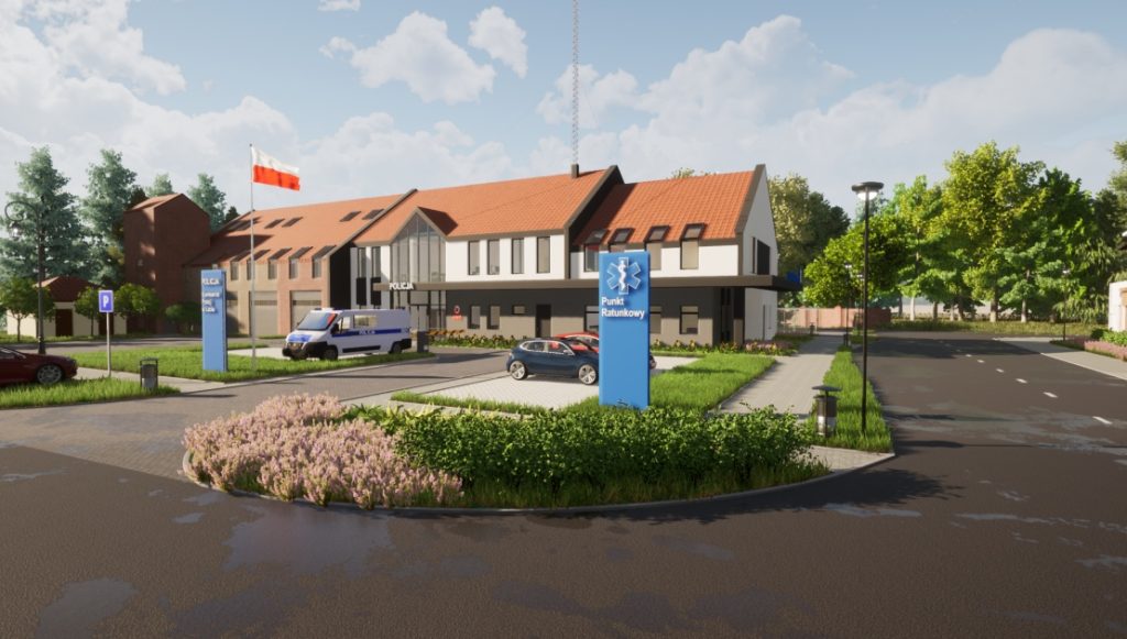 Plan przewiduje rozbudowę remizy OSP o dodatkowe wejścia i wykonanie oddzielnego dostępu do budynku dla komisariatu policji i punktu medycznego. Rozbudowa obejmuje również teren przyległy na którym powstaną miejsca parkingowe. Przebudowa zrealizowana zostanie w trybie zaprojektuj i buduj.