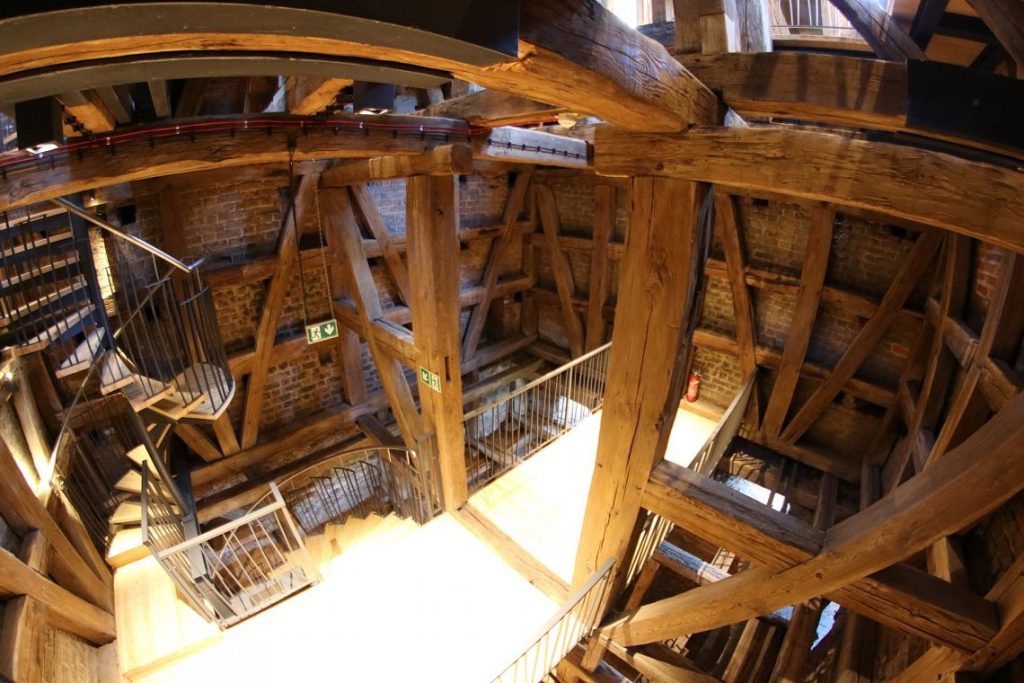 W ramach prac budowlanych realizowanych przy współpracy z Wojewódzkim Konserwatorem Zabytków w środku wieży wybudowano nową słupowo-ryglową drewnianą klatkę schodową. Prace renowacyjne prowadzone były także przy kościelnym dzwonie, zegarze i drzwiach wejściowych do wieży. Naprawione zostały także spiralne schody na poziom pierwszy wieży. W ramach remontu wieża zyskała nową instalację elektryczną i przeciwpożarową.
