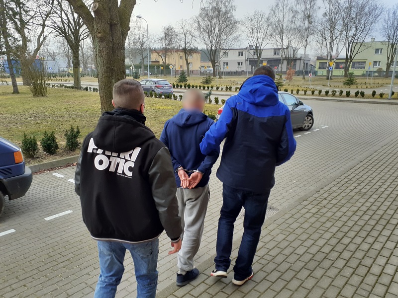 Kryminalni, pracujący nad sprawą wymuszenia rozbójniczego i kradzieży skody, do jakiej doszło na początku marca w Lęborku, szybko ustalili tożsamość podejrzewanych o te przestępstwa i rozpoczęli ich poszukiwania. We wtorek zatrzymali do sprawcy 35-letniego mężczyznę. Z materiałów sprawy wynika, że ten mężczyzna oraz jego wspólnik najprawdopodobniej wytypowali sobie osobę, dzięki której się „wzbogacą”. Na jednym z podwórek obydwaj weszli do samochodu, w którym znajdował się pokrzywdzony 28-latek. Zabrali mu kluczyki od auta i wyrwali z rąk telefon. Kazali mu wozić się po mieście i okolicach, co jakiś czas zmieniając się z nim za kierownicą. Jak się okazało, zaplanowali sobie sprzedaż auta 28-latka i podzielenie się pieniędzmi. Zmusili go do wydania kluczyków i dokumentów od samochodu. W pewnym momencie jeden z nich, kierując skodą, najechał na hydrant, uszkadzając auto. To pokrzyżowało plany sprawców. Wówczas zażądali od pokrzywdzonego pieniędzy, grożąc mu nożem. Gdy usłyszeli, że ich nie ma, jeden z nich uderzył go pięścią w tors i zażądał czegoś innego w zamian. Zmusił w ten sposób pokrzywdzonego do wskazania miejsca, w którym znajdowało się jego inne auto. Następnego dnia samochód „zniknął” z parkingu. Zanim to jednak nastąpiło sprawcy usiłowali groźbą zmusić 28-latka do podpisania umowy kupna – sprzedaży samochodu, przestrzegając go przy tym przed powiadomieniem Policji.