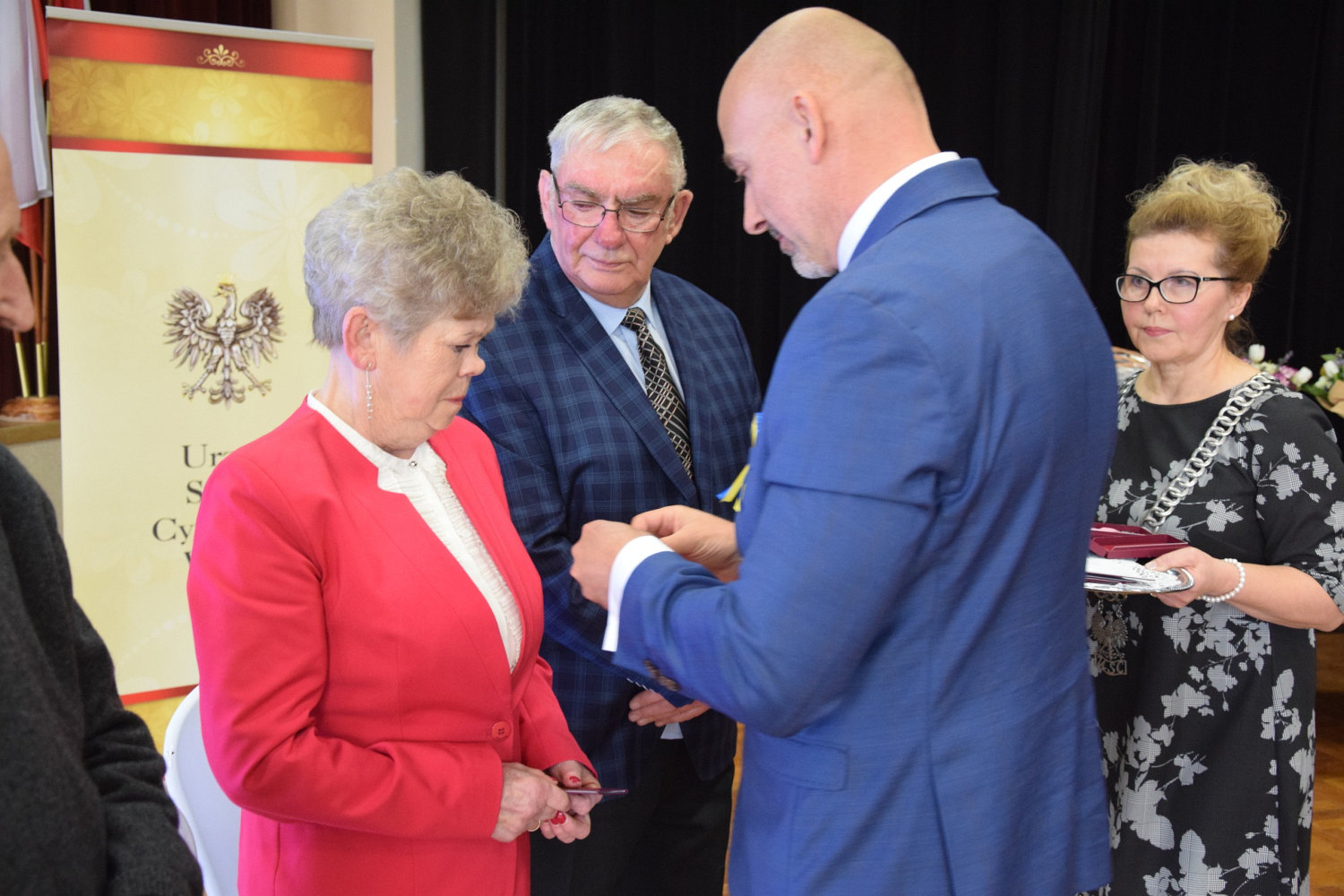Uroczystego wręczenia Medali za Długoletnie Pożycie Małżeńskie nadanych przez Prezydenta Rzeczypospolitej Polskiej dokonał Wójt Gminy Wicko Dariusz Waleśkiewicz oraz z-ca Wójta Gminy Wicko Agnieszka Wolańska. Jubilatom wręczono odznaczenia, pamiątkowe dyplomy, kosz słodkości oraz kwiaty.