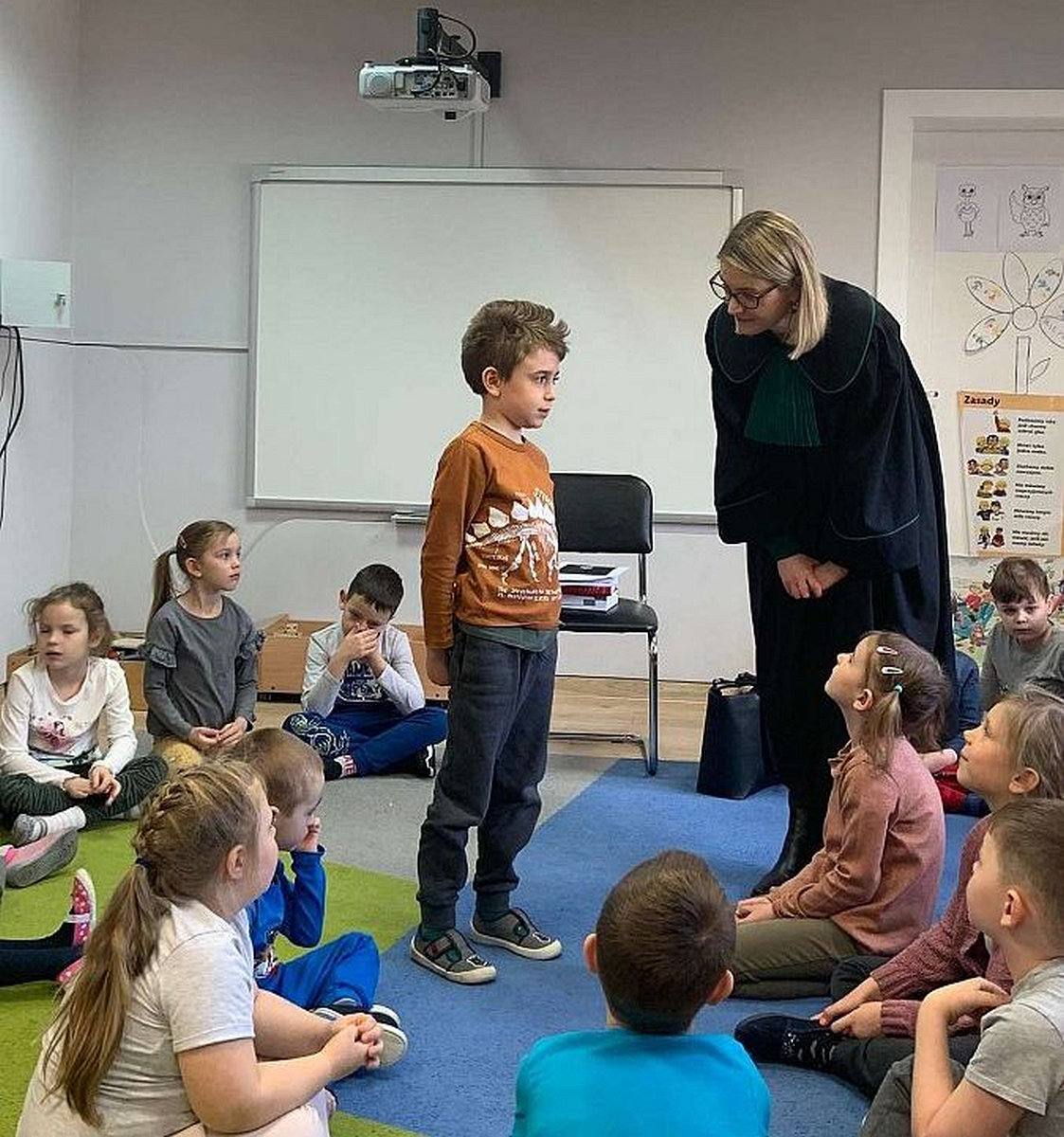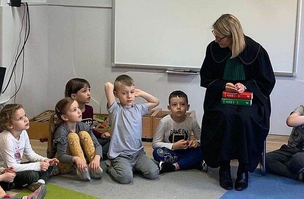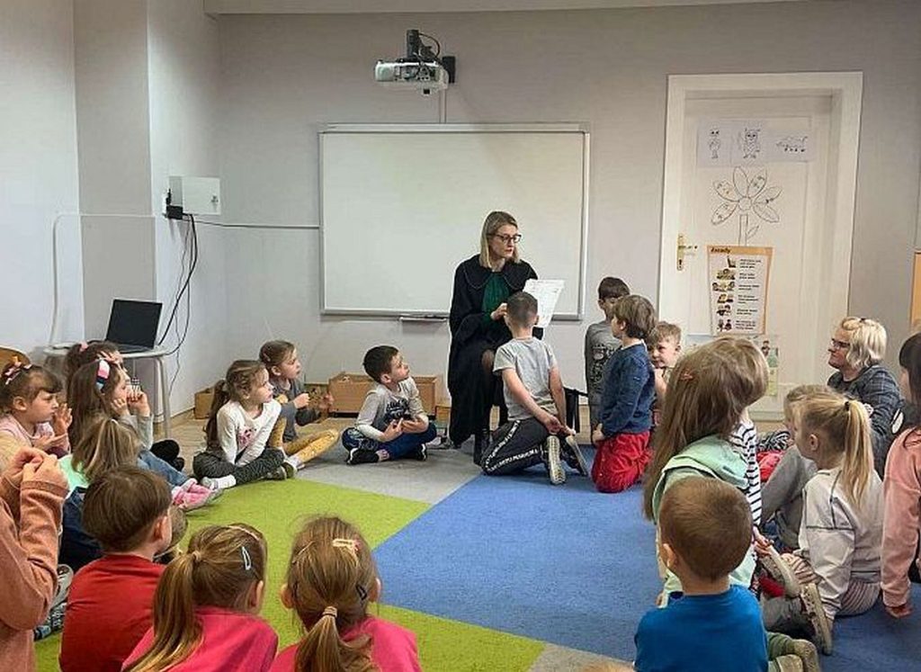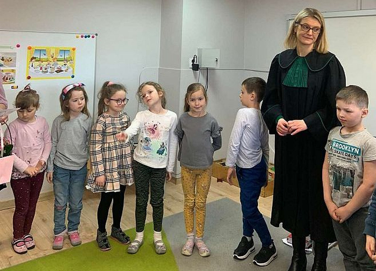 W ramach cyklu spotkań „Poznajemy zawody” Przedszkole nr 10 w Lęborku odwiedziła adwokat Kamilla Kasprzak. Podczas interesującej dla dzieci wizyty dzieci dowiedziały się, jak długo trzeba się uczyć żeby zostać adwokatem i na czym polega praca adwokata. Poznały też szereg pojęć związanych z zawodami prawniczymi. Dużą atrakcją była zabawa w sąd zaproponowana przez panią adwokat. Dzieci przekonały się, jak trudno jest się bronić, oskarżać i orzekać o winie. Na zakończenie zajęć przedszkolaki otrzymały od gościa upominki w postaci kolorowanek.