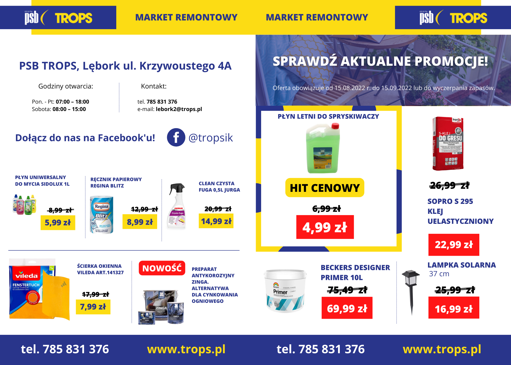 W TROPS S.A. obniżają ceny nawet do – 50%. Taniej kupić można produkty niezbędne do prac w ogrodzie, środki czystości, czy narzędzia budowlane. Promocje obowiązują od 15 lipca do 15 września lub do wyczerpania zapasów.