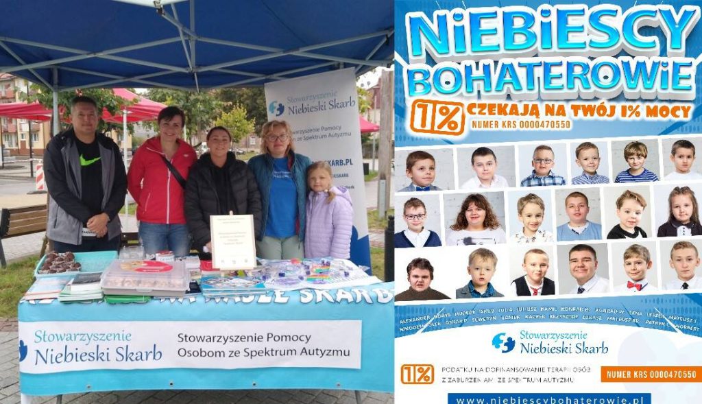 Akcja „Niebiescy Bohaterowie” czyli zbiórka środków na terapię dzieci i młodzieży z autyzmem prowadzona przez lęborskie Stowarzyszenie Pomocy Osobom ze Spektrum Autyzmu „Niebieski Skarb” z kolejnym rekordem ! Z tytułu odpisu z 1% podatku za rok 2021 Stowarzyszenie zebrało dokładnie 59.813,50 złotych. To kilkadziesiąt złotych więcej niż rok wcześniej. Środki przelane na konto niebieskiego skarbu przez Urząd Skarbowy przeznaczone zostaną na terapię dzieci i młodzieży z zaburzeniami ze spektrum autyzmu.