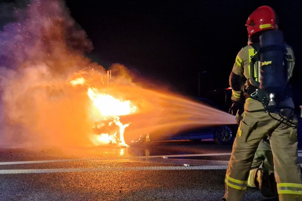 Wczoraj wieczorem, ok. godz. 23:40 na drodze między Wickiem a Wrześciem zapalił się samochód osobowy m-ki Opel Astra. Jako, że kierowca pojazdu nie dal rady samemu ugasić pożar została wezwana straż pożarna. Na miejsce zdarzenia przyjechały dwa zastępy OSP z Wrześcia i Wicka oraz JRG z Lęborka i policja. W chwili obecnej nie jest znana przyczyna pożaru samochodu, być może doszło do zwarcia przewodów elektrycznych pod maską pojazdu. Na szczęście nic nikomu się nie stało.