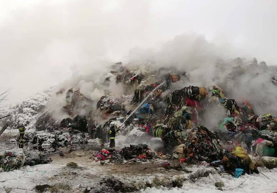 Dzisiaj rano, ok. godz 08:00 na składowisku odpadów w Kamieńcu (gm. Cewice) nad dwoma pryzmami sprasowanej odzieży po raz kolejny pojawił się dym. Użyta kamera termowizyjna potwierdziła proces spalania w jej wnętrzu. To już 18 akcja gaśnicza w tym roku i 20 od jesieni 2021 roku. Ostatnia miała miejsce w piątek, 25.11.br Działania strażaków także i tym razem polegały na intensywnym przelewaniu wodą tlącego się miejsca. Cała akcja trwała do godz. 15 a uczestniczyło w niej 6 jednostek straży pożarnej: 1 z Państwowej Straży Pożarnej w Lęborku oraz 5 z OSP Nowa Wieś Lęborska, Cewice, Łebunia, Strzeszewo i Pieski. Przyczyną tlącego się składowiska odpadów jest najprawdopodobniej wysoka temperatura utrzymująca się w wnętrzu pryzm oraz tzw. samozapłon, spowodowany gazami wewnątrz pryzm z odzieżą używaną.