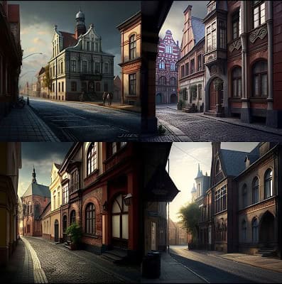 Postanowiliśmy sprawdzić jak AI poradzi sobie z namalowaniem Lęborka. Wpisaliśmy więc odpowiednie słowa: „miasto Lębork w Polsce namalowane na globusie” oraz „zabytki miasta Lębork w Polsce”. Zobaczcie efekt 40 sekundowej pracy komputera: