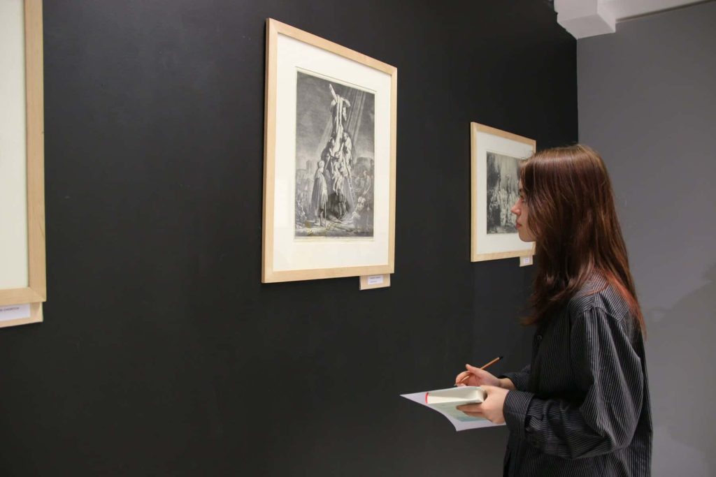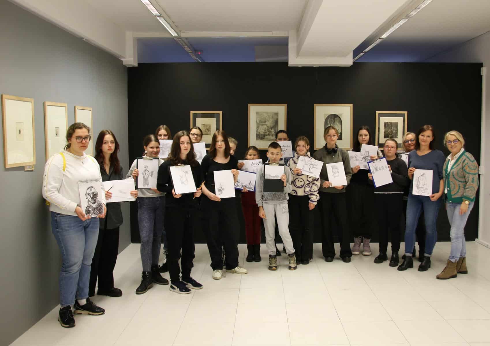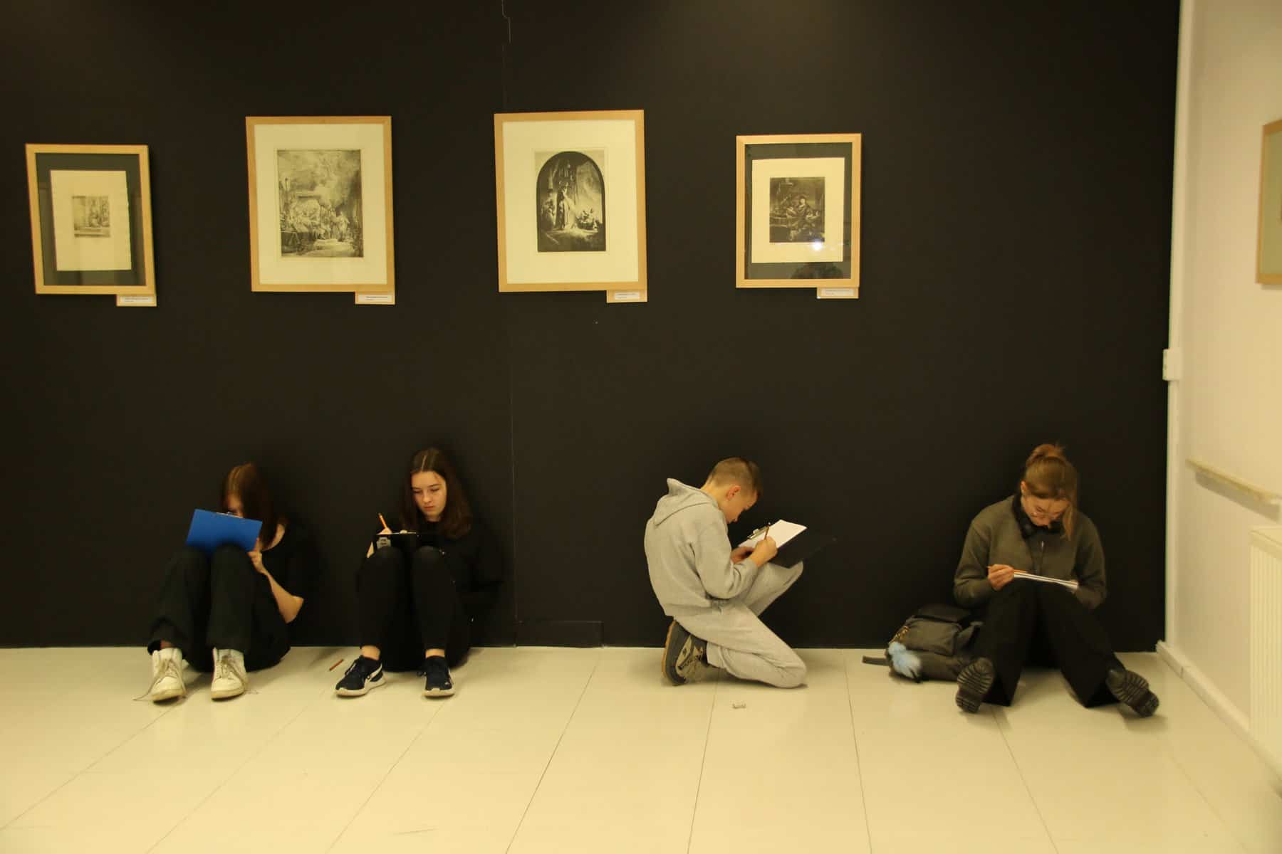 Po zwiedzeniu wystawy i wysłuchaniu krótkiego wykładu o życiu Rembrandta oraz technikach, które stosował w malarstwie, grafice i rysunku, każdy mógł spróbować swoich sił w kopiowaniu mistrza.
