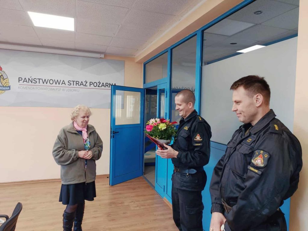 Pani Maria Solecka jest głównym księgowym w Komendzie Powiatowej Państwowej Straży Pożarnej (KP PSP) w Lęborku, gdzie obchodziła jubileusz 45-lecia pracy zawodowej. Pani Maria Solecka pracuje w KP PSP w Lęborku od 19 listopada 2008 roku. Odpowiada głównie za sprawowanie nadzoru w imieniu komendanta powiatowego nad gospodarką finansową, prowadzenie rachunkowości KP PSP, opracowywanie projektów budżetu i prowadzenie gospodarki finansowej zgodnie z obowiązującymi zasadami. W dn. 16 stycznia br z okazji jubileuszu 45-lecia pracy, funkcjonariusze i pracownicy cywilni tutejszej komendy podziękowali Pani Marii za codzienną pracę i zaangażowanie w wykonywaniu obowiązków służbowych oraz za życzliwość jaką darzy wszystkich każdego dnia. Strażacy z PSP Lębork dziękują i życzą wielu sukcesów na kolejne lata pracy oraz wszelkiej pomyślności w życiu osobistym.