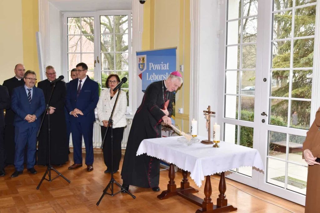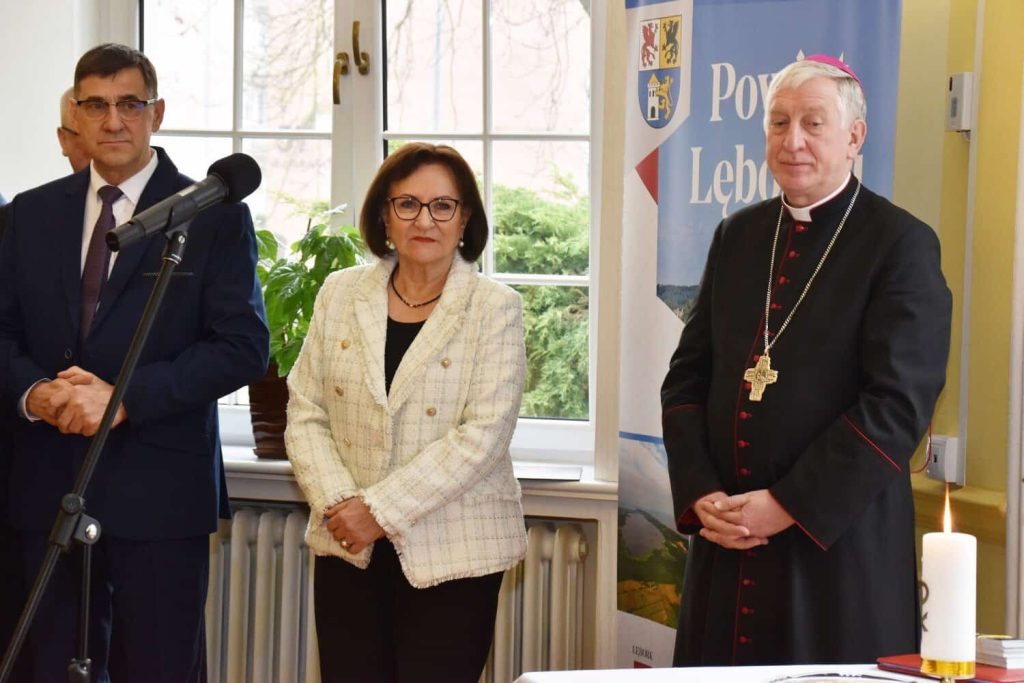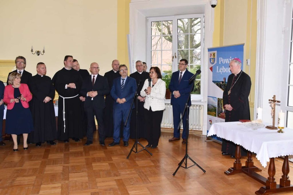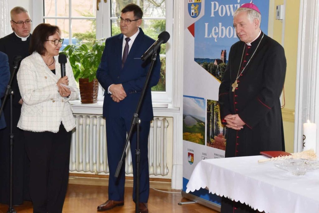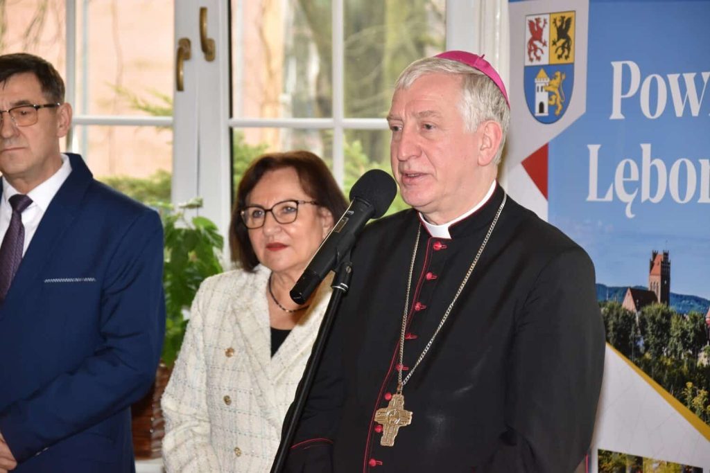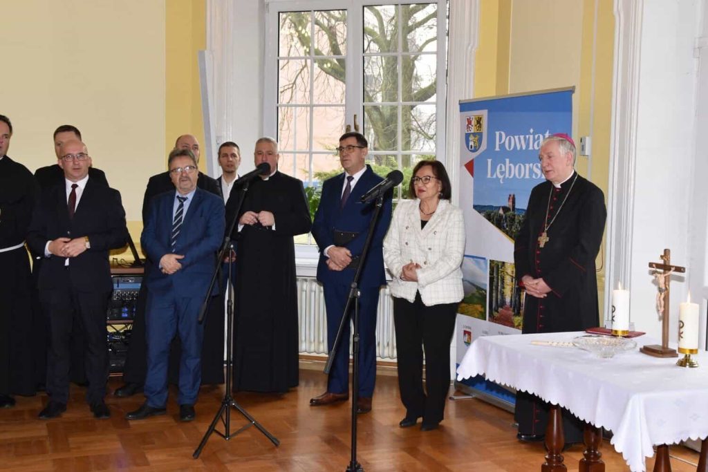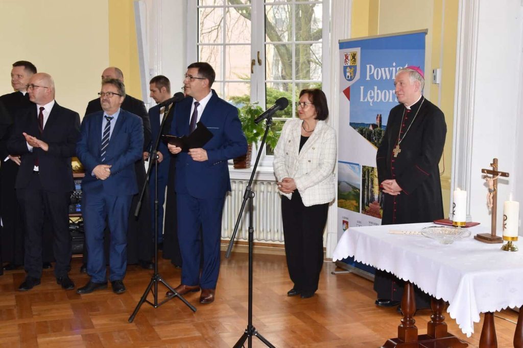O błogosławieństwo dla mieszkańców powiatu poprosił ks. biskupa Mirosław Tandek – przewodniczący Rady Powiatu Lęborskiego. – Na co dzień widzimy, że obecny czas jest czasem trudnym, nacechowanym niepokojami i widmem wojny tuż za naszymi granicami. Dlatego tak ważne jest tworzenie dobra, które łączy nas wszystkich – mówił Mirosław Tandek – Jako samorządowcy skupiamy się na służbie wspólnocie mieszkańców powiatu, by zabezpieczyć jej potrzeby wewnętrzne i zewnętrzne. Ufamy, że obecność ks. biskupa wśród nas przyczyni się na drodze do budowania wśród nas żywego kościoła. Aby sprostać niełatwym wyzwaniom, potrzebujemy duchowej siły, która wesprze nas we współpracy na rzecz dobra człowieka, rodziny i narodu.