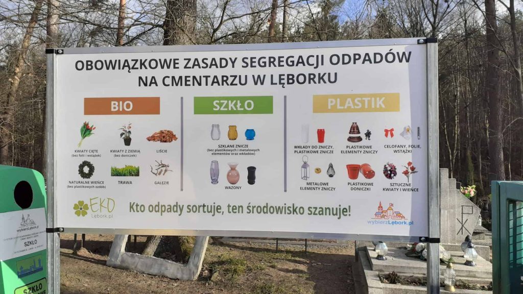 Segregacja odpadów na cmentarzu w Lęborku od 1 stycznia 2023 r. polega na wyodrębnieniu odpadów:
