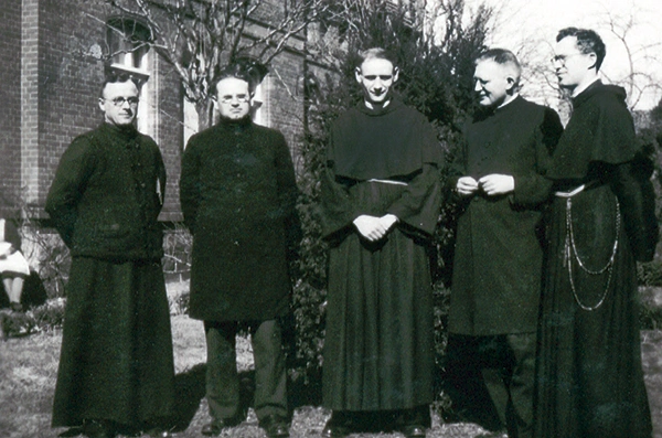 Na poniższym zdjęciu, pochodzącym ze zbiorów Zachariasza Frącka… Drugi od prawej stoi ks. dr Kurt Heinrich, dawny proboszcz parafii św. Jakuba w Lęborku, który przeżył masakrę na plebanii.