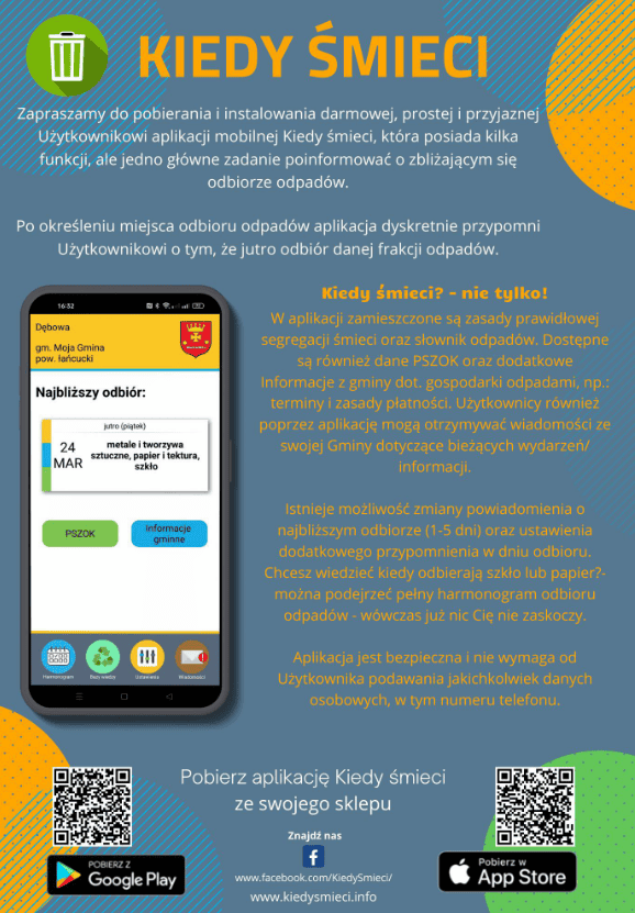 Szczegółowe informacje na temat aplikacji dostępne również na stronie internetowej: kiedysmieci.info