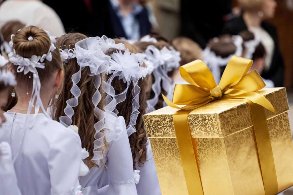 Pierwsza Komunią Święta ma także swój wymiar materialny. Po zakończeniu uroczystej Mszy Świętej w kościele, rozpoczyna się spotkanie rodzinne w domu lub wynajętej sali. Wtedy też przychodzi czas na obdarowywanie dzieci oczekiwanymi przez nie symbolicznymi prezentami. 10-latkowie chcieliby tego dnia otrzymać coś wyjątkowego, coś co zapamiętają na całe życie.