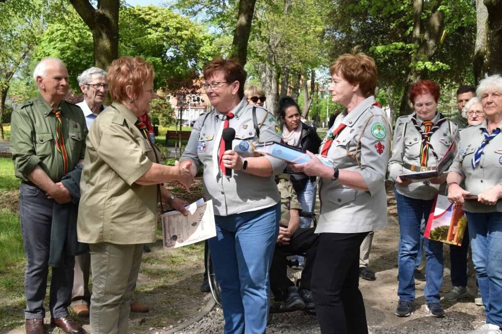 Uroczyste obchody 25-lecia Harcerskiego Kręgu Seniorów „Dęby” odbyły się w minioną sobotę, 13 maja, w parku im. Mieczysława Michalskiego w Lęborku, gdzie stanął obelisk z pamiątkowymi tablicami.
