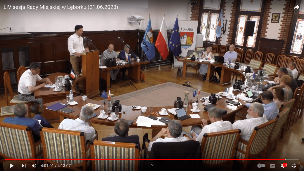 Interpelację radnego (od 4:00:38) i pełny zapis ostatniej sesji Rady Miejskiej w Lęborku można obejrzeć w serwisie YouTube: