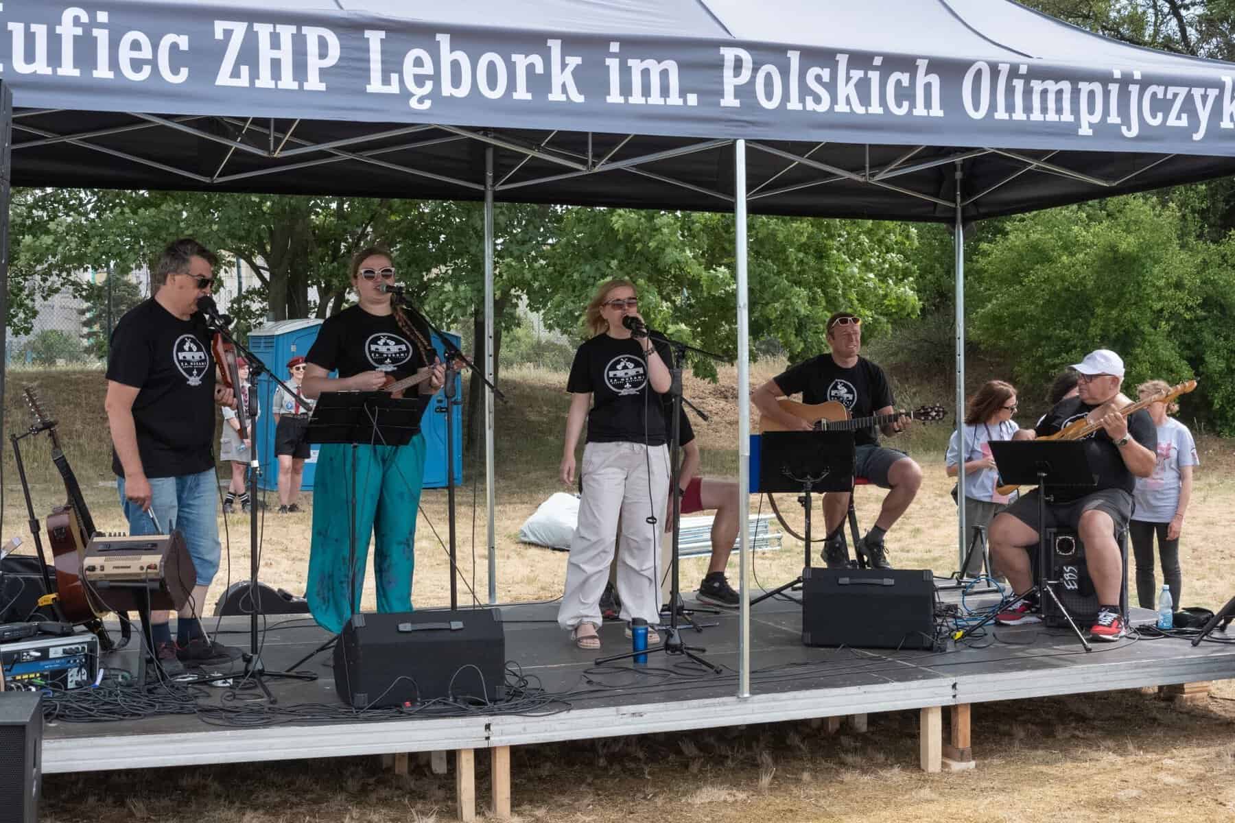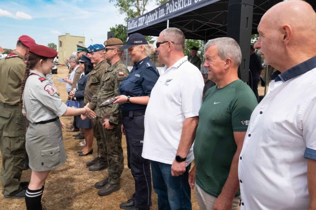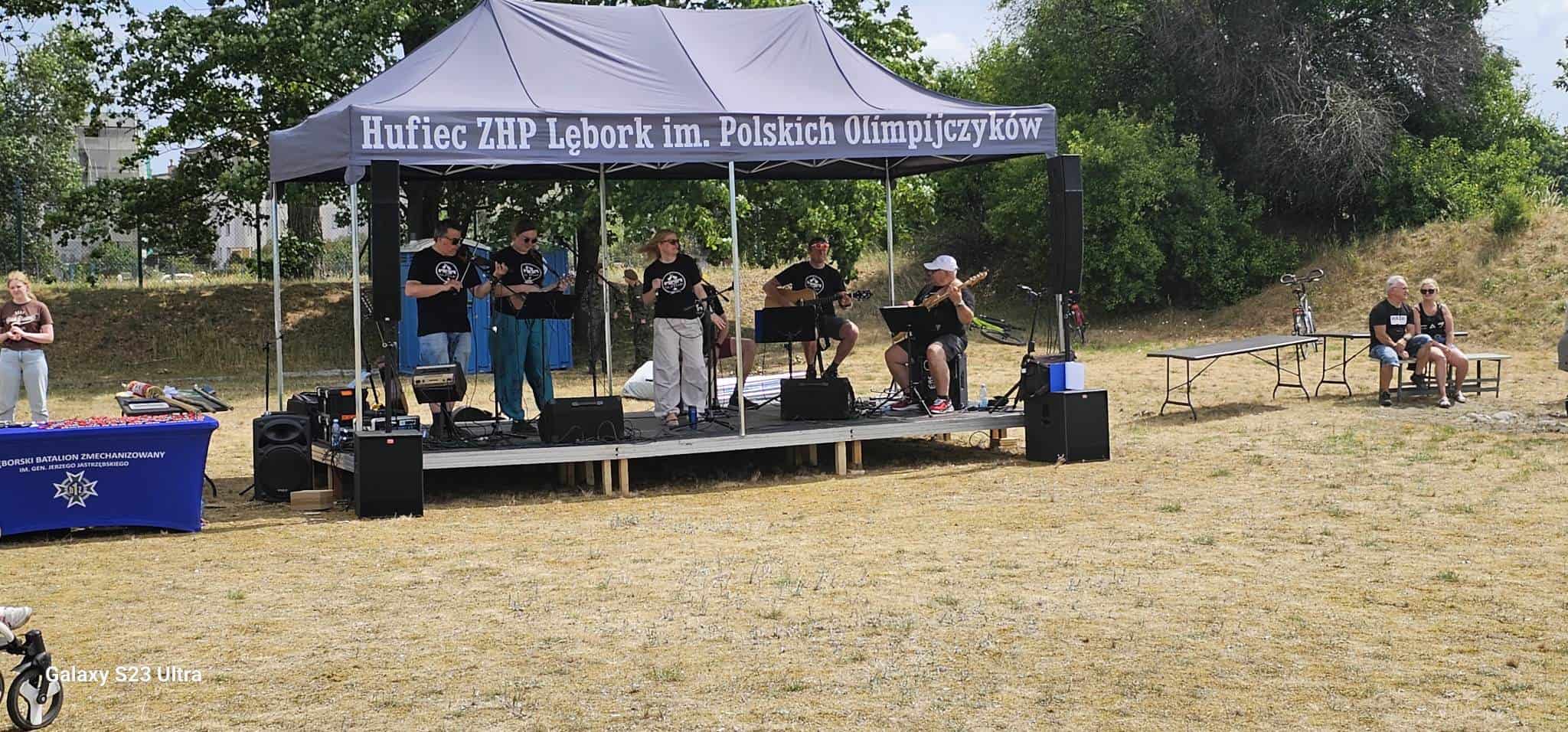Chętni mieli do dyspozycji strzelnicę z bronią pneumatyczną, zaś na wszystkich czekał poczęstunek w postaci grochówki i waty cukrowej. O muzyczne wrażenia zadbał zespół „Za Murami”. Finałem pikniku był uroczysty apel, podczas którego wręczono przyjaciołom drużyny okolicznościowe pamiątkowe ryngrafy i rocznicowe medale. Ślad obecności przedstawicieli powiatu pozostał w postaci grawertonu, jaki starosta lęborski Alicja Zajączkowska przekazała na ręce prowadzącego uroczystości hm. Krzysztofa Siwki.