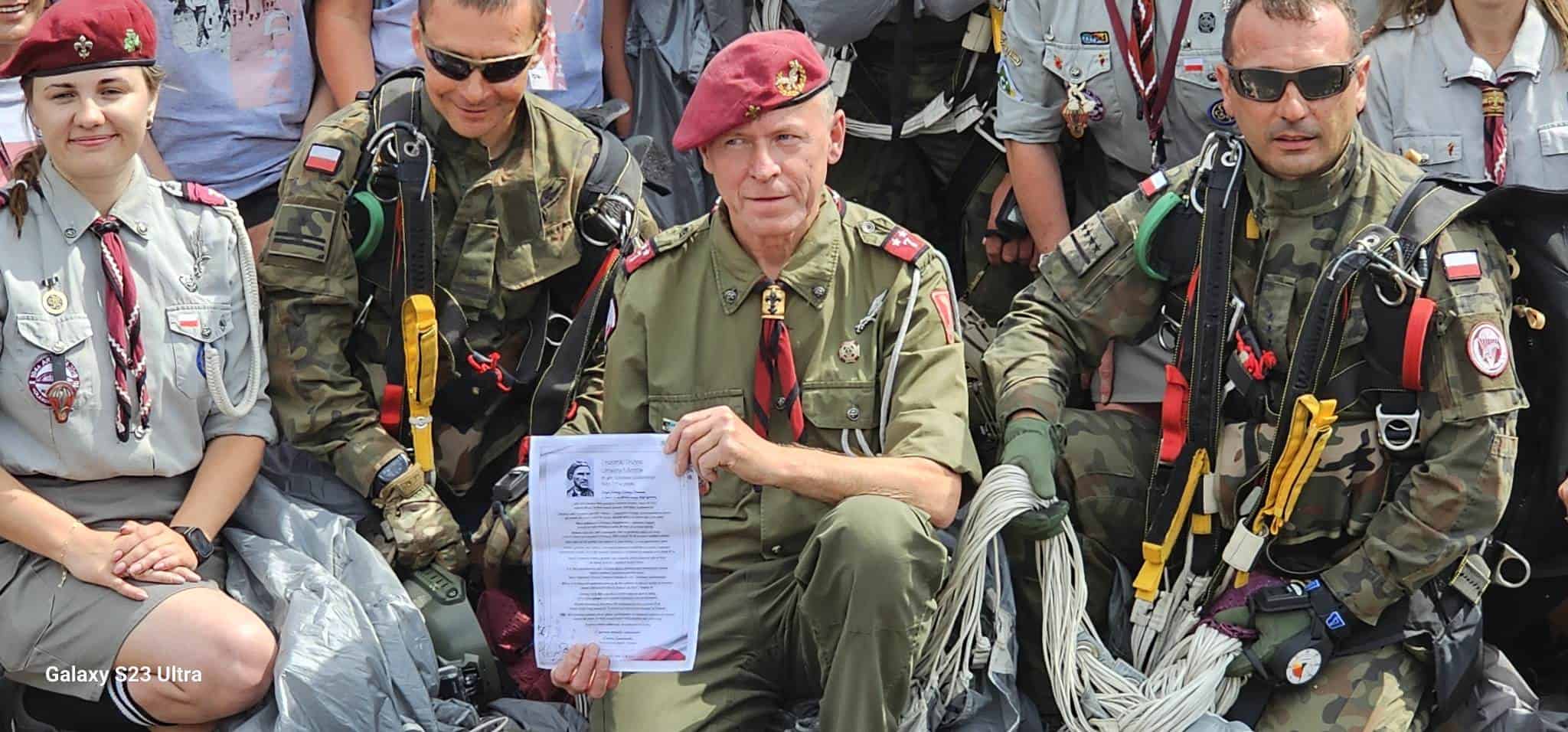 Podczas spadochronowego pokazu, żołnierze z krakowskiej brygady skoczyli z samolotu z 4 flagami: narodową, z podobizn gen. Sosabowskiego, ze znakiem 6. Brygady, ze znakiem Batalionu Dowodzenia oraz z listem od wdowy po wnuku generała – mieszkającej w Portugalii Doroty Sosabowskiej, w którym zawarła życzenia dla lęborskich harcerzy: „Obraliście sobie za patrona generała i żołnierzy 1 Samodzielnej Brygady Spadochronowej w czasach, gdy prawie nikt o nich jeszcze nie słyszał i oficjalnie głośno nie było można o tym jeszcze mówić. Wasze spotkania na Cmentarzu Powązkowskim z żołnierzami Brygady przeszły nie tylko do historii Drużyny, ale stały się żywą legendą. Dzięki takim jak Wy generał i jego żołnierze są żywą Historią, a nie zapomnianym pyłem”.