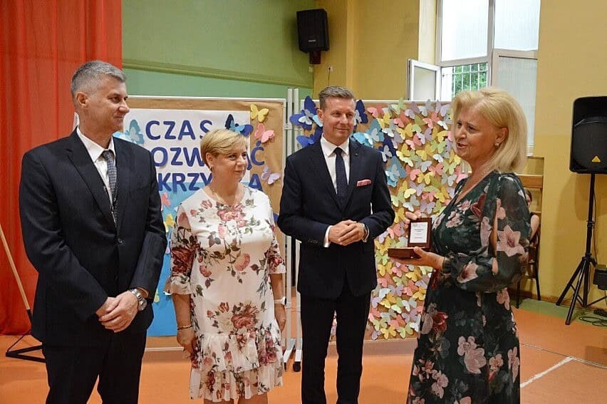 W imieniu starosty lęborskiego wyróżnienie odebrała Ewa Burak – naczelnik Wydziału Edukacji i Spraw Społecznych. Jedną z form współpracy między starostwem a szkołą jest udział młodzieży tej placówki w spotkaniach w ramach projektu „Otwarta Firma”, podczas których uczestnicy spotykają się z władzami starostwa, zapoznają się z historycznymi ciekawostkami z dziejów ponad 100-letniego budynku, a także z zakresem usług świadczonych interesantom przez urząd, zakresem kompetencji poszczególnych wydziałów, czyli w dużym skrócie – co i gdzie można „załatwić”. Kolejnym aspektem omawianym podczas odwiedzin jest praca samorządowców oraz kompetencje i możliwości, jakimi dysponują radni. Wszystko to ma służyć z jednej strony poszerzeniu wiedzy w zakresie pracy urzędniczej, z drugiej zaś wspierają zainteresowanie samorządnością, co może w przyszłości wpłynąć na wspieranie budowy świadomego społeczeństwa obywatelskiego.
