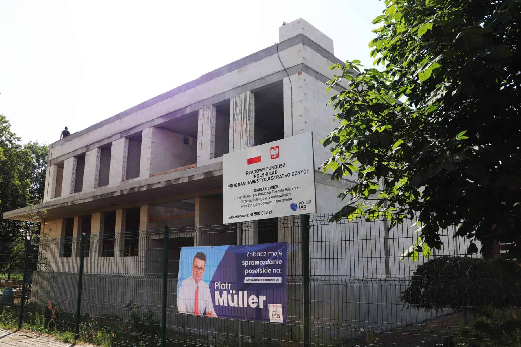 Na rozbudowę szkoły gmina Cewice pozyskała dofinansowanie w wysokości 8.500 000,00 zł z Rządowego Funduszu Polski Ład: Program Inwestycji Strategicznych. Całkowita wartość inwestycji wyniesie 10.895 350,00 zł. Wszystkie prace mają się zakończyć do czerwca 2024 roku.