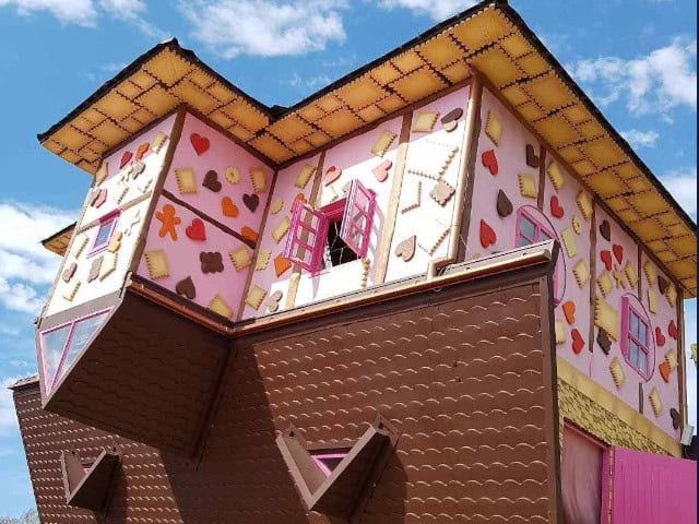 Jeżeli będziesz w Łebie, to koniecznie musisz zajrzeć do wyjątkowego i nietypowego Domku do Góry Nogami przy ulicy Brzozowej 12 (kliknij i zobacz na mapie – https://goo.gl/maps/aZXYJQwRSu8TimZj9).