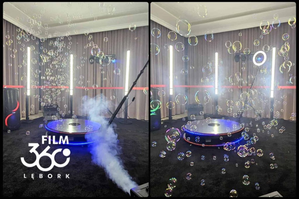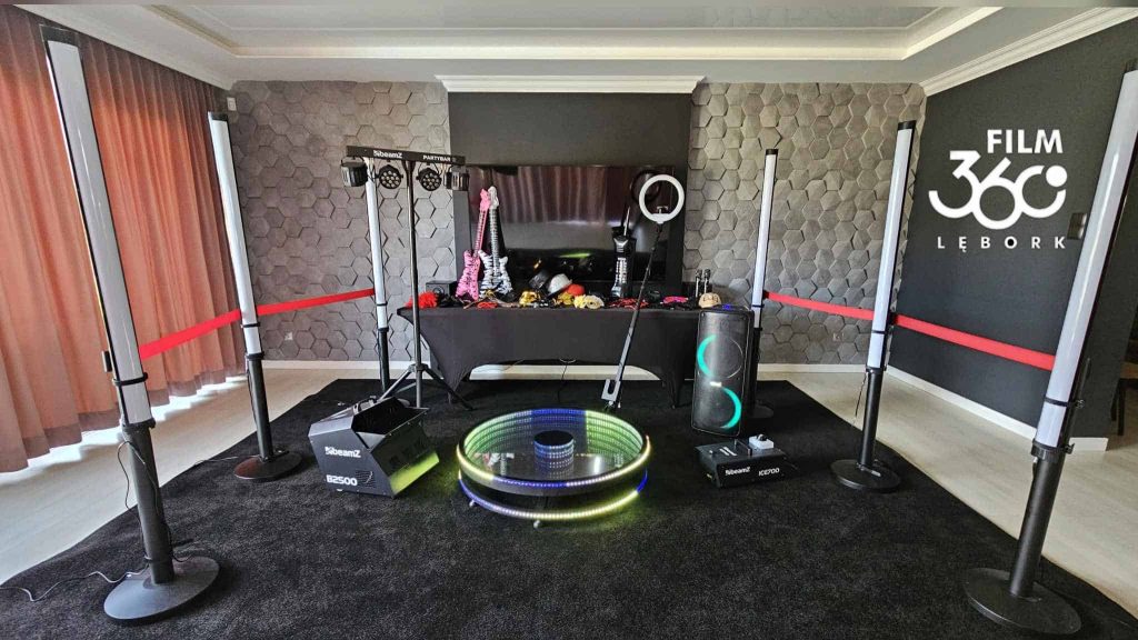 Firma Film360Lębork oferuje pełen pakiet wynajmu Fotobudki 360 z wyjątkową platformą lustrzaną LED o średnicy 100 cm, która pomieści do 5 dorosłych osób.