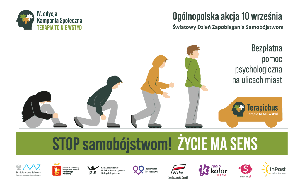 Wydarzenie jest organizowane z okazji przypadającego 10 września Światowego Dnia Zapobiegania Samobójstwom. W specjalnym terapiobusie nie zabraknie rozmów, zarówno z rodzinami osób po próbach samobójczych, jak i z mieszkańcami na temat istotnej roli profilaktyki zdrowia psychicznego. Będzie mowa o tym, jak wspierać, pomagać i być uważnym na drugą osobę, jak na nowo odnaleźć sens w życiu i że nikt nie jest sam, choćby sytuacja była bardzo ciężka. Będą konsultacje, materiały edukacyjne i solidna dawka wiedzy na temat zdrowia psychicznego.