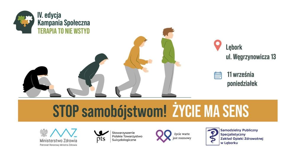 „Stop Samobójstwom! Życie ma sens” – szósta edycja kampanii społecznej pod takim właśnie hasłem odbędzie się już w poniedziałek, 11 września, w parku przy lęborskim szpitalu. Podczas akcji w specjalnym terapiobusie udzielana będzie bezpłatna pomoc psychologiczna.