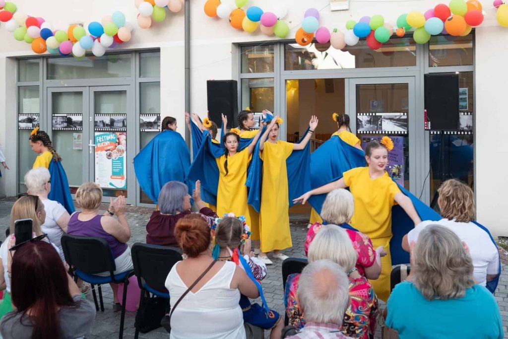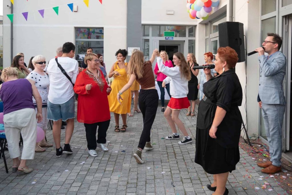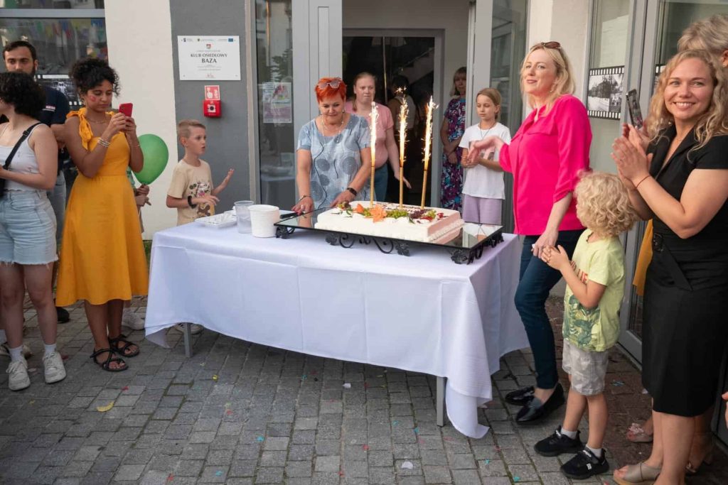 Po oficjalnym spotkaniu rocznicowym, na terenie przed Klubem Osiedlowym Baza można było obejrzeć artystyczne prezentacje odbywające się w ramach Festiwalu Ulicznego.