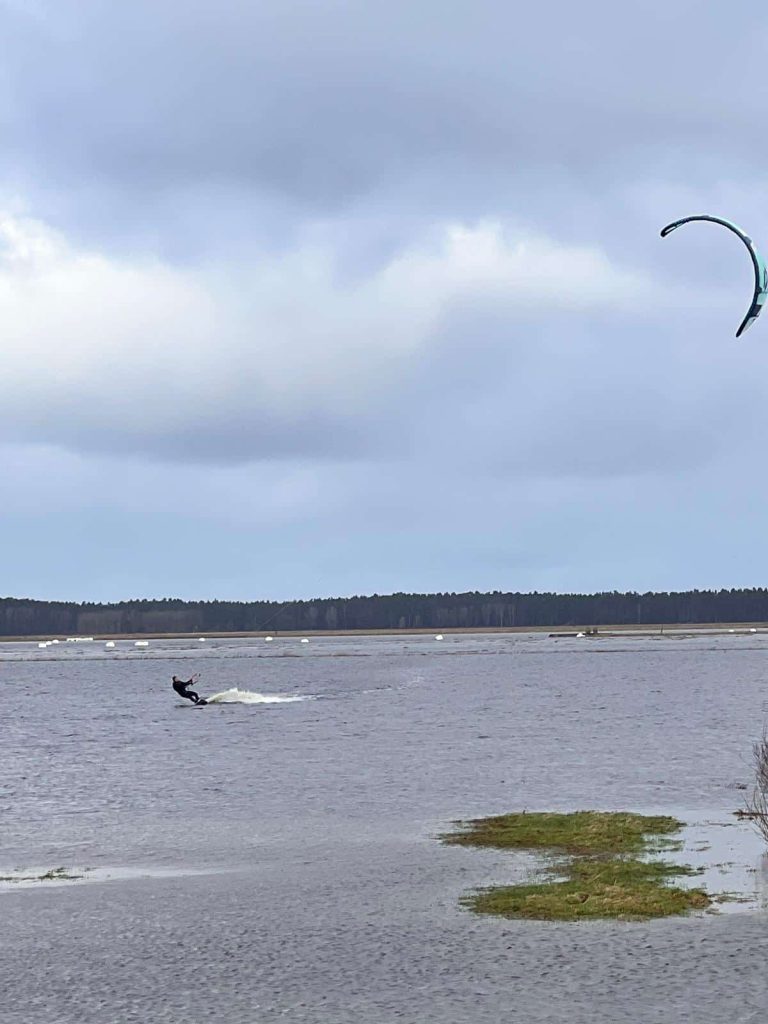 Na miejscu obecne są tłumy gapiów. Wietrzna pogoda sprzyja także kitesurferom, których przyciągnął stworzony przez nadmiar wody zbiornik wodny.
