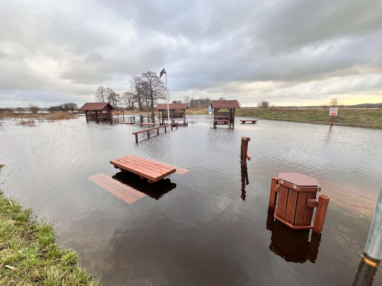 Panie piszący artykuł – woda zalała nie pola lecz łąki. Nie powinno dziwić także, że tereny te od zawsze były zalewane i nic w tym dziwnego. Takie jest naturalne ukształtowanie tego terenu. A co do przystani kajakowej, to projektantowi najwyraźniej zabrakło wyobraźni. To nie natura lecz człowiek jest temu winien, że ta mała architektura szybko ulegnie zniszczeniu.