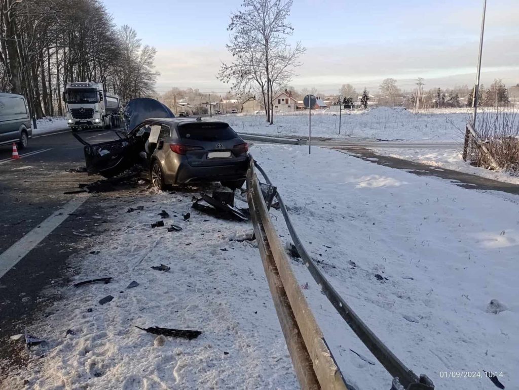 Do zdarzenia doszło we wtorek, 9 grudnia około godziny 8 rano na drodze krajowej nr 6 w miejscowości Darżyno w gminie Potęgowo. Z pozyskanych informacji wynika, że mitsubishi zderzyło się z toyotą.