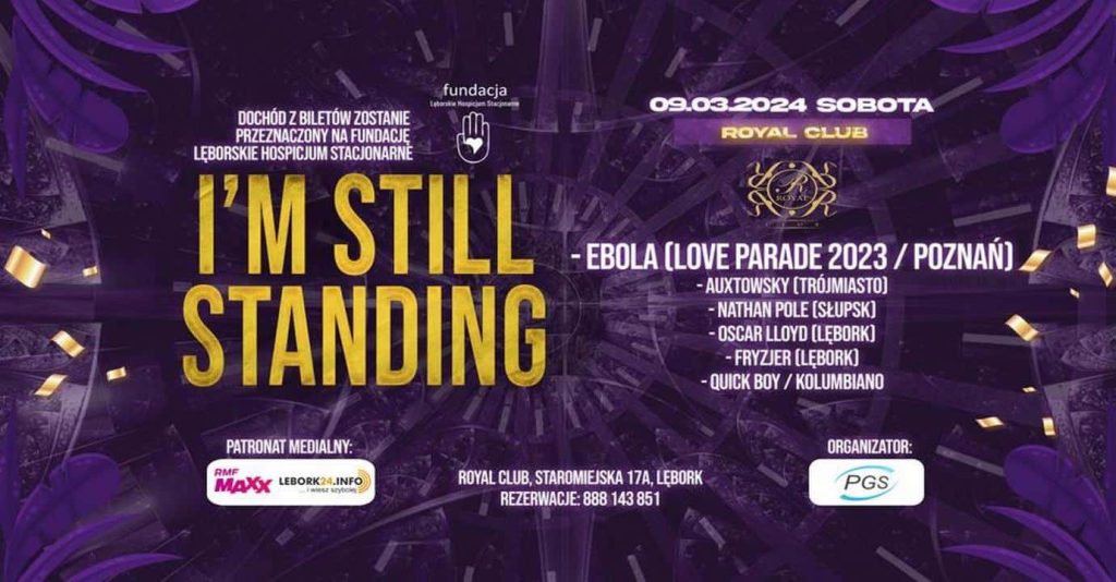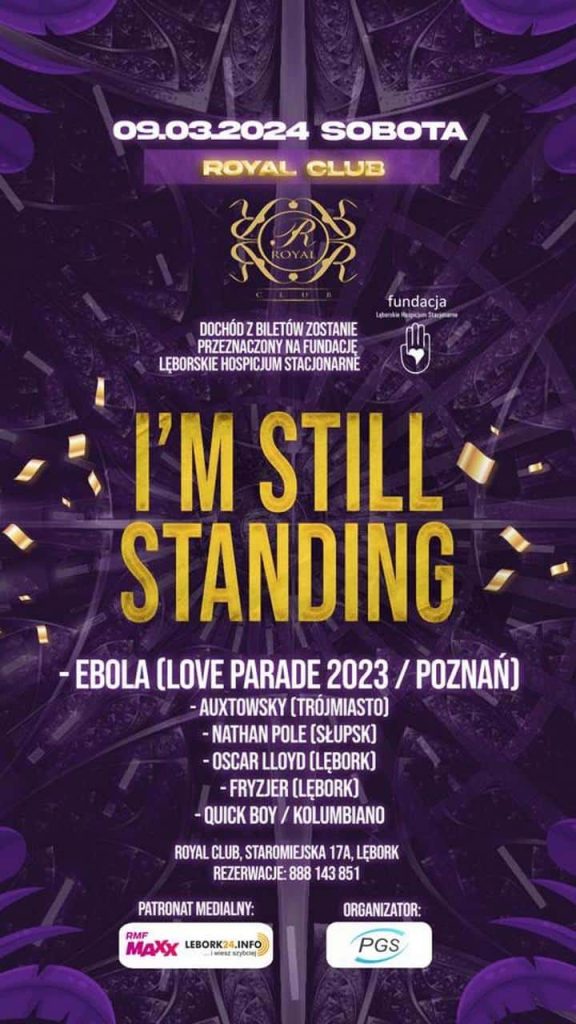 Pierwsza impreza muzyczna z cyklu „I’m Still Standing” odbędzie się w Royal Club Lębork. Wydarzenie, które zaplanowano na sobotę, 9 marca, będzie połączone ze zbiórką na rzecz budowy hospicjum w Pogorzelicach.