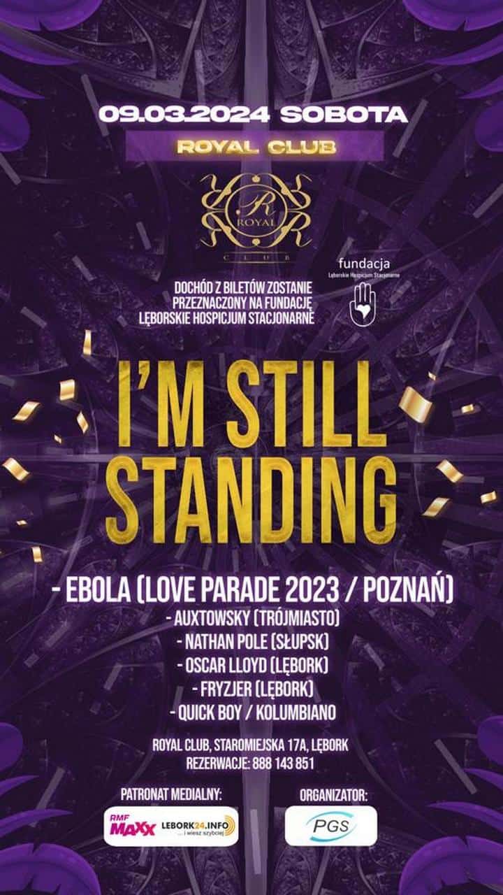 Muzyczna impreza z cyklu „I’m Still Standing” odbędzie się w sobotę, 9 marca, o godzinie 22:00 w Royal Club Lębork przy ul. Staromiejskiej. Bilety można rezerwować dzwoniąc pod numer 888-143-851. Patronami medialnymi wydarzenia są Lebork24.info i RMF Maxx.