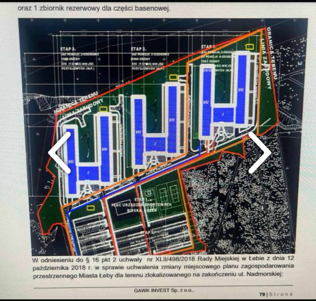 Dodano także, ze mieszkańcy Łeby w 2018 roku brali aktywny udział w konsultacjach społecznych dotyczących zmiany Miejscowego Planu Zagospodarowania Przestrzennego terenu na zakończeniu ulicy Nadmorskiej. Zaznaczono, że stowarzyszenie nie słyszało o konsultacjach dla mieszkańców dotyczących samej inwestycji. Nikt też nie zapoznał mieszkańców z projektem inwestycji ani z samym inwestorem.