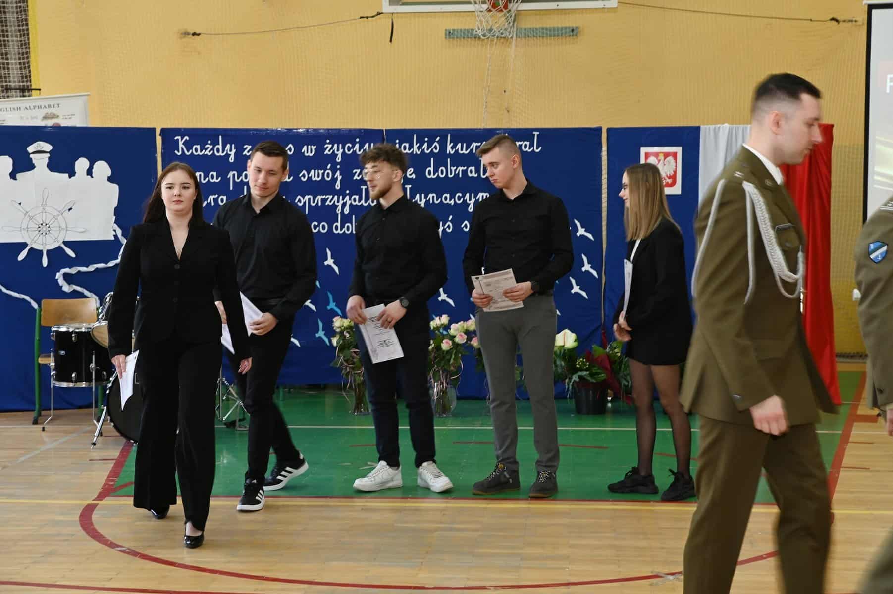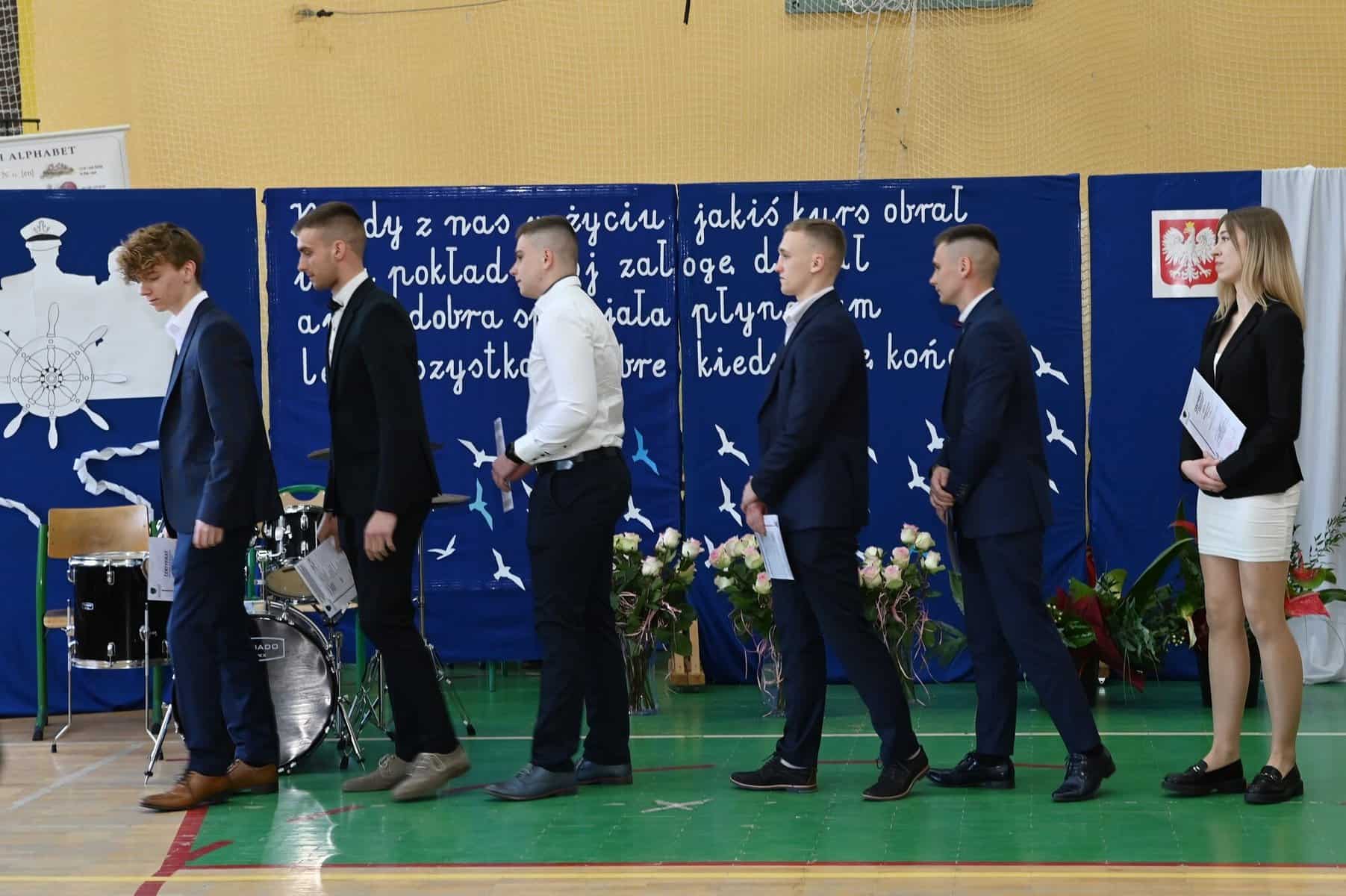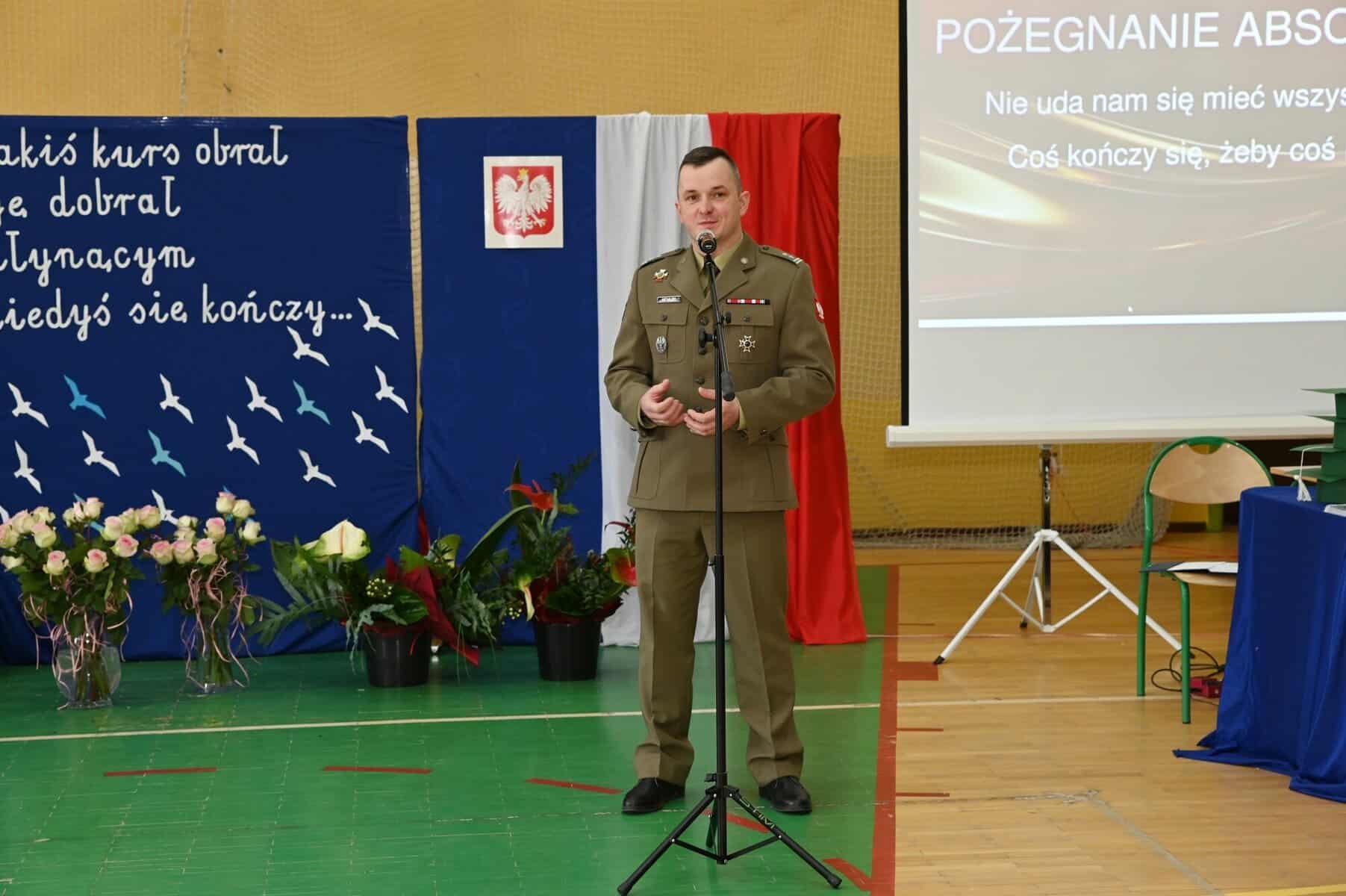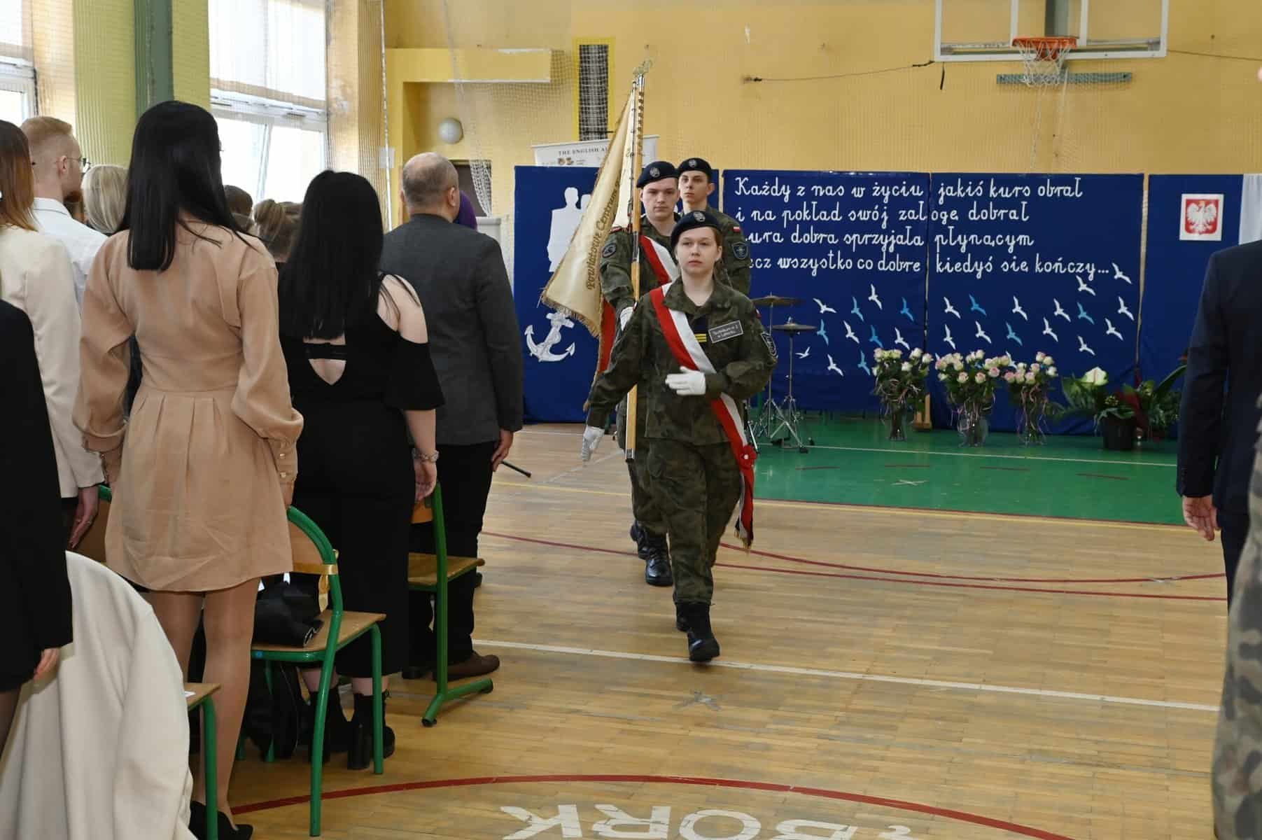 – Każde z umieszczonych tu słów ma swój głęboki sens – powiedziała starosta powiatu lęborskiego Alicja Zajączkowska, odnosząc się do tych słów. – Wy dzisiaj jesteście kapitanami swojego okrętu, swojego życia. Wy sami musicie zdecydować kogo dobierzecie na swój pokład. Życzę, żebyście dobrali jak najlepiej. A na nadchodzące egzaminy, życzę wam szczęścia, podobnie jak na wszystkie inne życiowe egzaminy, które kiedyś w przyszłości będziecie musieli zdawać. Życzenia mądrych życiowych wyborów przekazał absolwentom także ppłk Michał Michalski, dowódca 1. Lęborskiego Batalionu Zmechanizowanego im. gen. Jerzego Jastrzębskiego, współpracującego ze szkołą w zakresie realizacji programu przygotowania wojskowego. – Życzę wam, żebyście mieli na siebie pomysł. Żeby droga, którą wybierzecie była zgodna z waszymi ambicjami, zainteresowaniami, abyście czuli się spełnieni czy to w pracy zawodowej, czy w dalszej nauce.