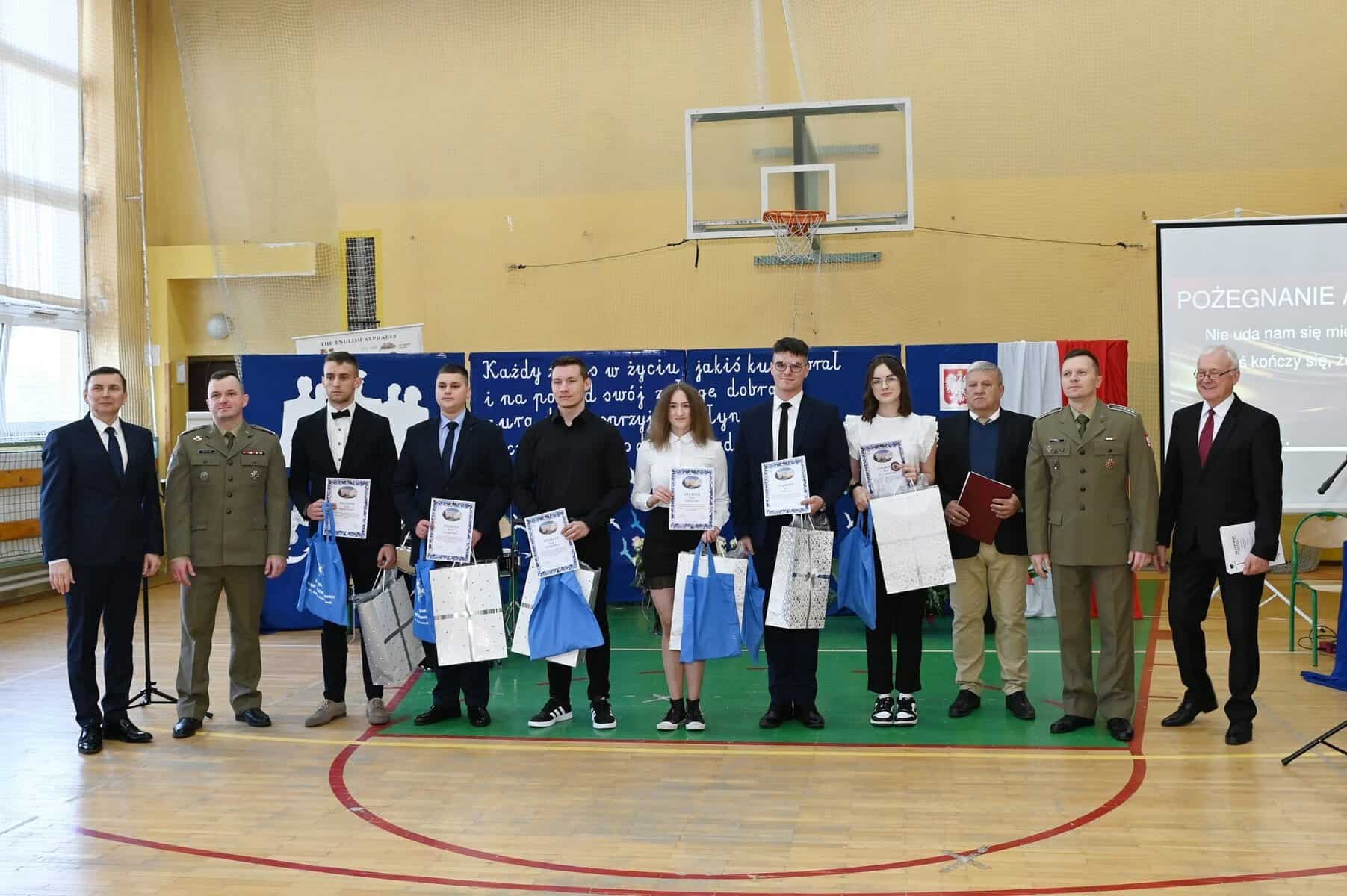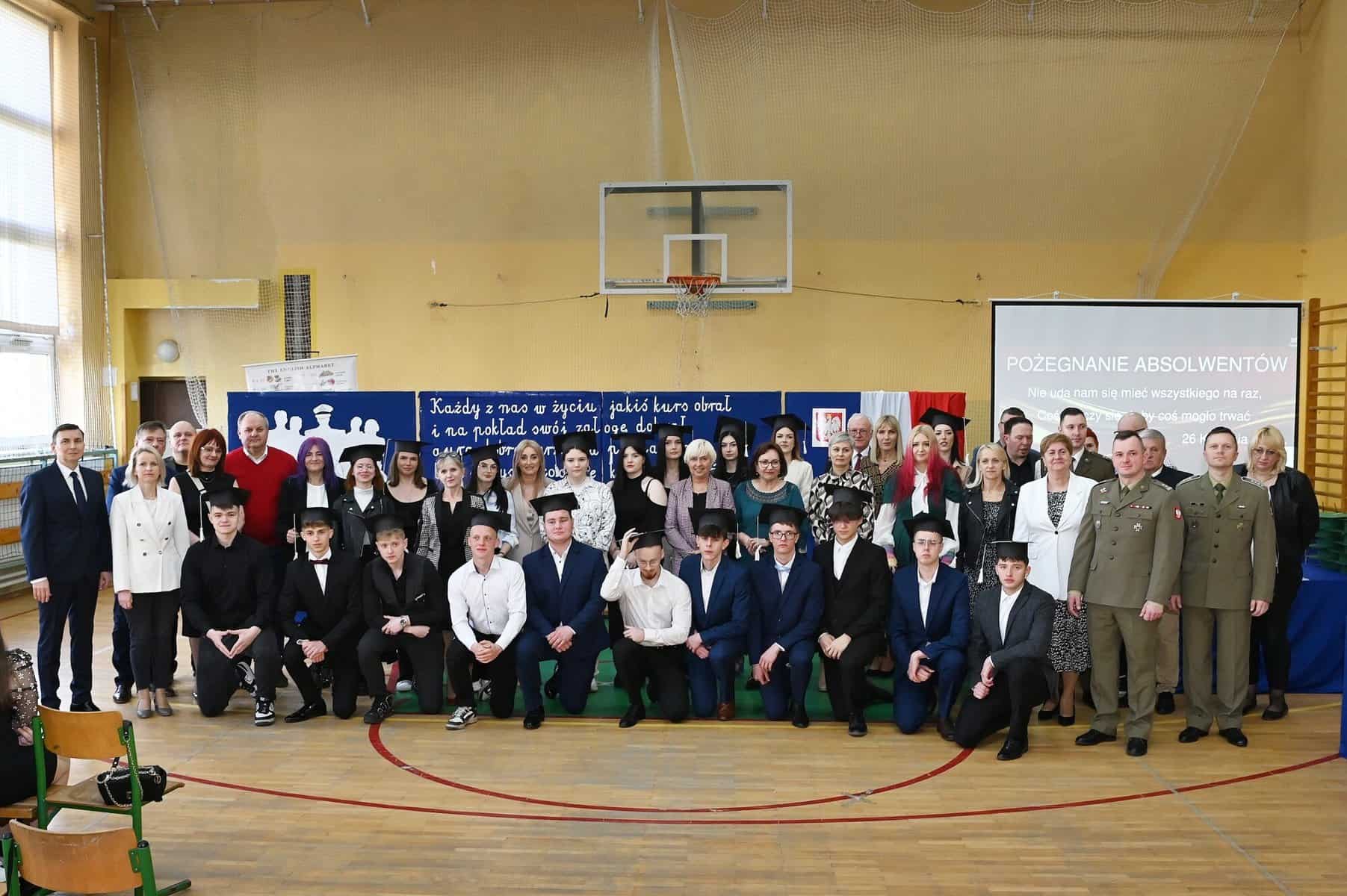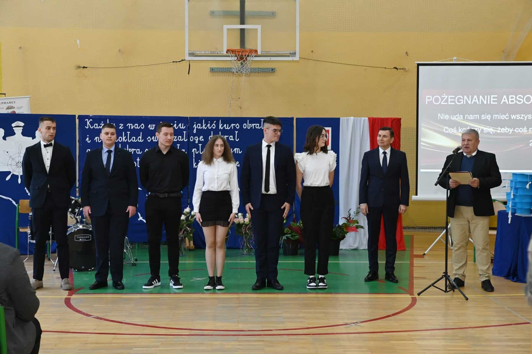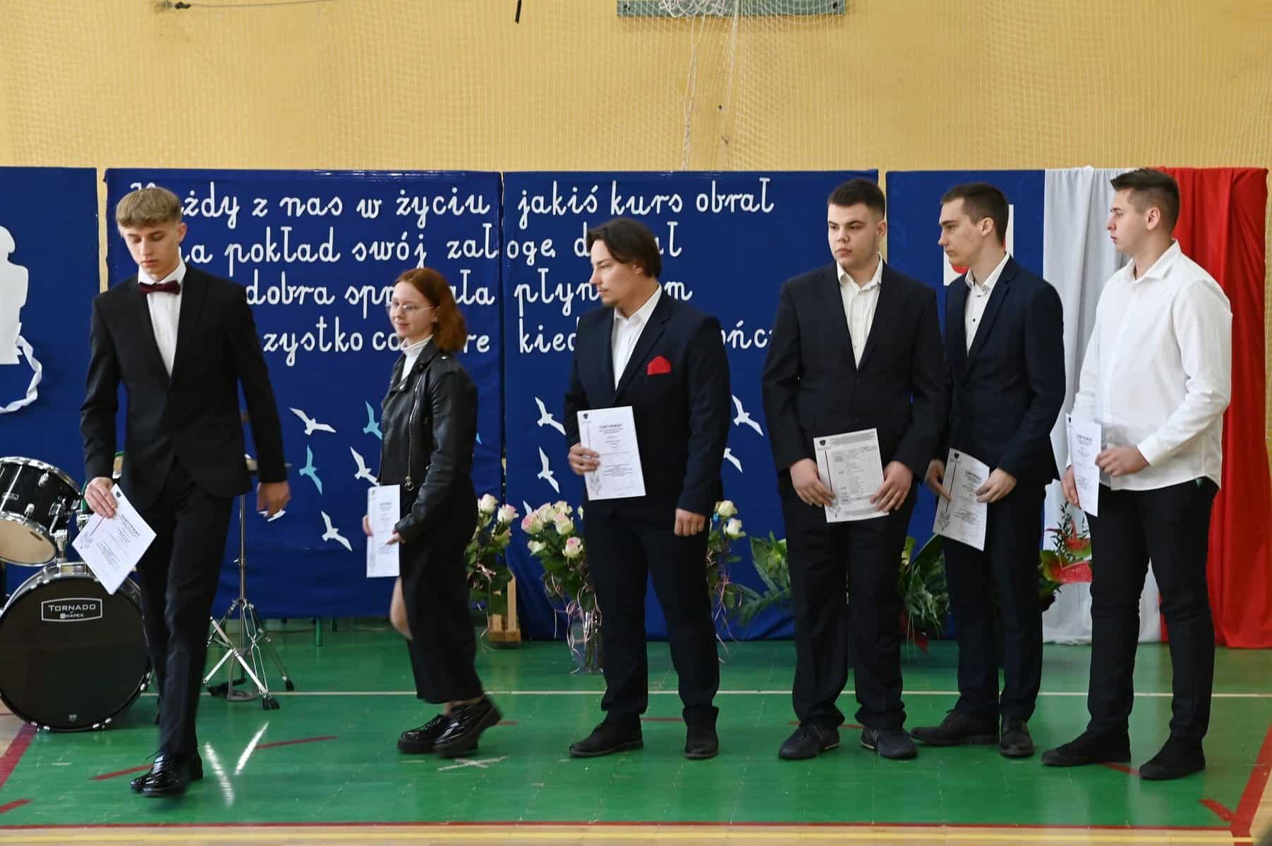 – Każde z umieszczonych tu słów ma swój głęboki sens – powiedziała starosta powiatu lęborskiego Alicja Zajączkowska, odnosząc się do tych słów. – Wy dzisiaj jesteście kapitanami swojego okrętu, swojego życia. Wy sami musicie zdecydować kogo dobierzecie na swój pokład. Życzę, żebyście dobrali jak najlepiej. A na nadchodzące egzaminy, życzę wam szczęścia, podobnie jak na wszystkie inne życiowe egzaminy, które kiedyś w przyszłości będziecie musieli zdawać. Życzenia mądrych życiowych wyborów przekazał absolwentom także ppłk Michał Michalski, dowódca 1. Lęborskiego Batalionu Zmechanizowanego im. gen. Jerzego Jastrzębskiego, współpracującego ze szkołą w zakresie realizacji programu przygotowania wojskowego. – Życzę wam, żebyście mieli na siebie pomysł. Żeby droga, którą wybierzecie była zgodna z waszymi ambicjami, zainteresowaniami, abyście czuli się spełnieni czy to w pracy zawodowej, czy w dalszej nauce.
