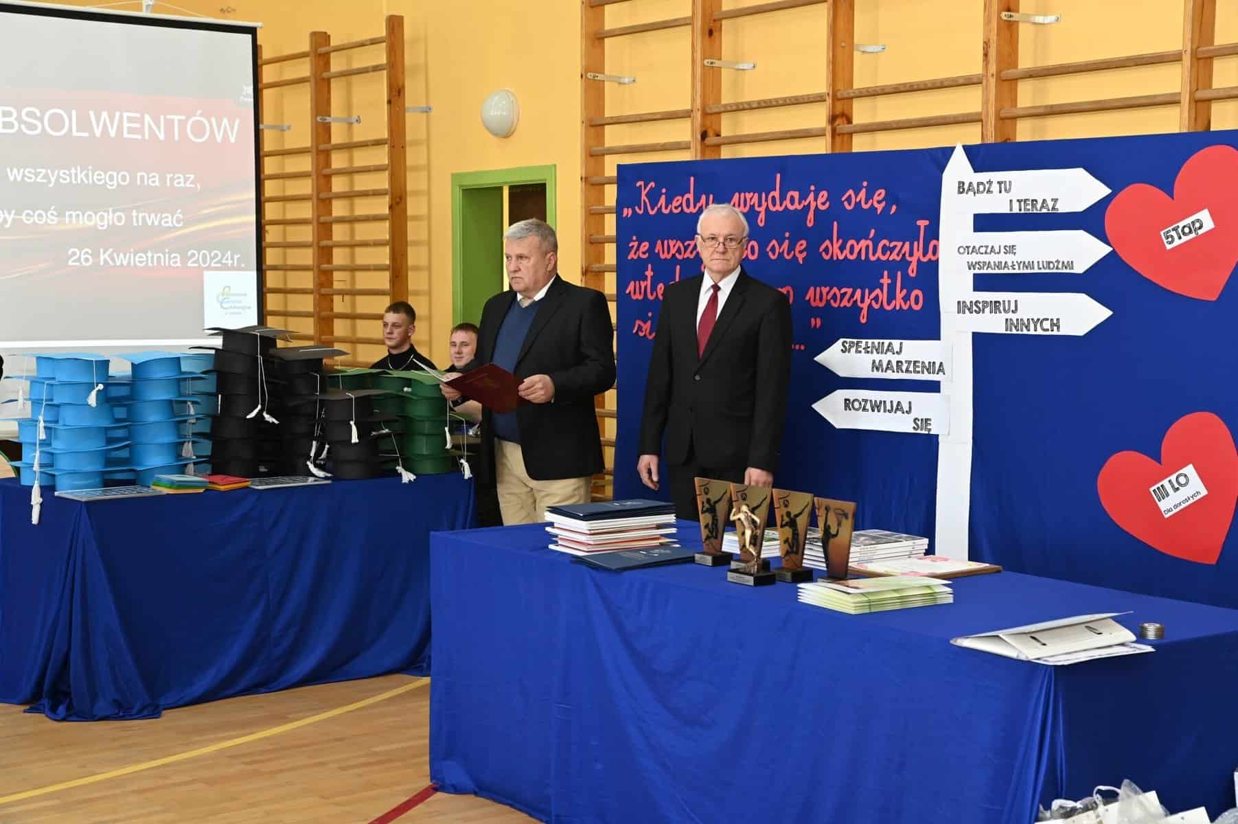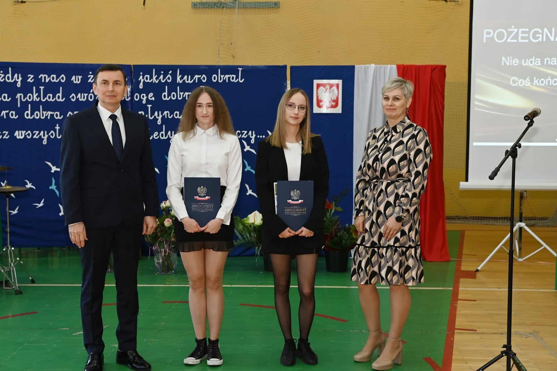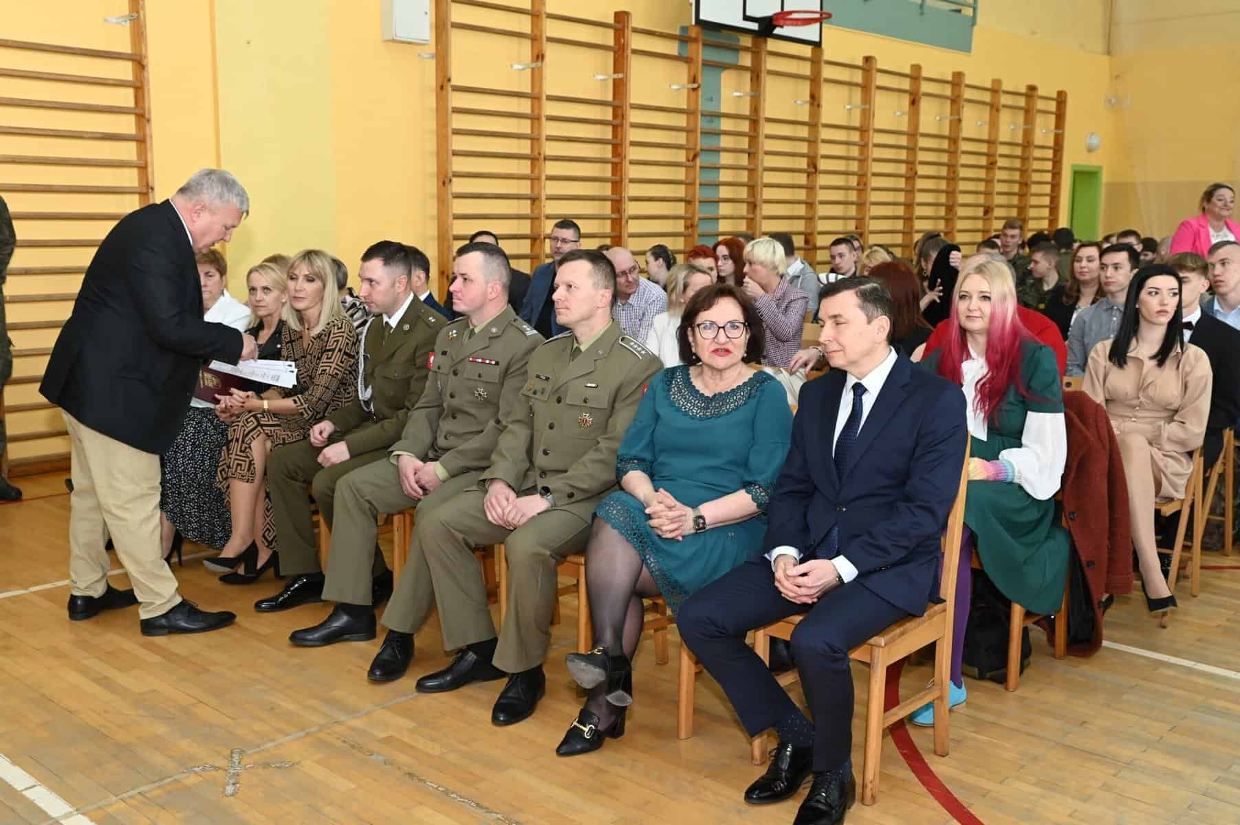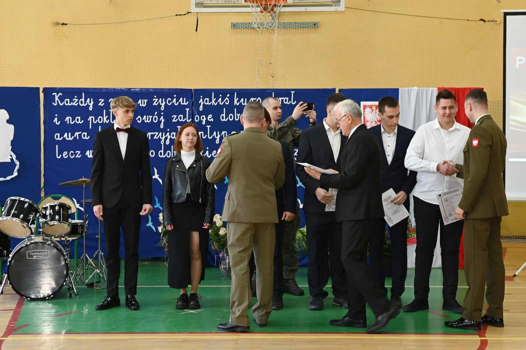 – Każde z umieszczonych tu słów ma swój głęboki sens – powiedziała starosta powiatu lęborskiego Alicja Zajączkowska, odnosząc się do tych słów. – Wy dzisiaj jesteście kapitanami swojego okrętu, swojego życia. Wy sami musicie zdecydować kogo dobierzecie na swój pokład. Życzę, żebyście dobrali jak najlepiej. A na nadchodzące egzaminy, życzę wam szczęścia, podobnie jak na wszystkie inne życiowe egzaminy, które kiedyś w przyszłości będziecie musieli zdawać. Życzenia mądrych życiowych wyborów przekazał absolwentom także ppłk Michał Michalski, dowódca 1. Lęborskiego Batalionu Zmechanizowanego im. gen. Jerzego Jastrzębskiego, współpracującego ze szkołą w zakresie realizacji programu przygotowania wojskowego. – Życzę wam, żebyście mieli na siebie pomysł. Żeby droga, którą wybierzecie była zgodna z waszymi ambicjami, zainteresowaniami, abyście czuli się spełnieni czy to w pracy zawodowej, czy w dalszej nauce.