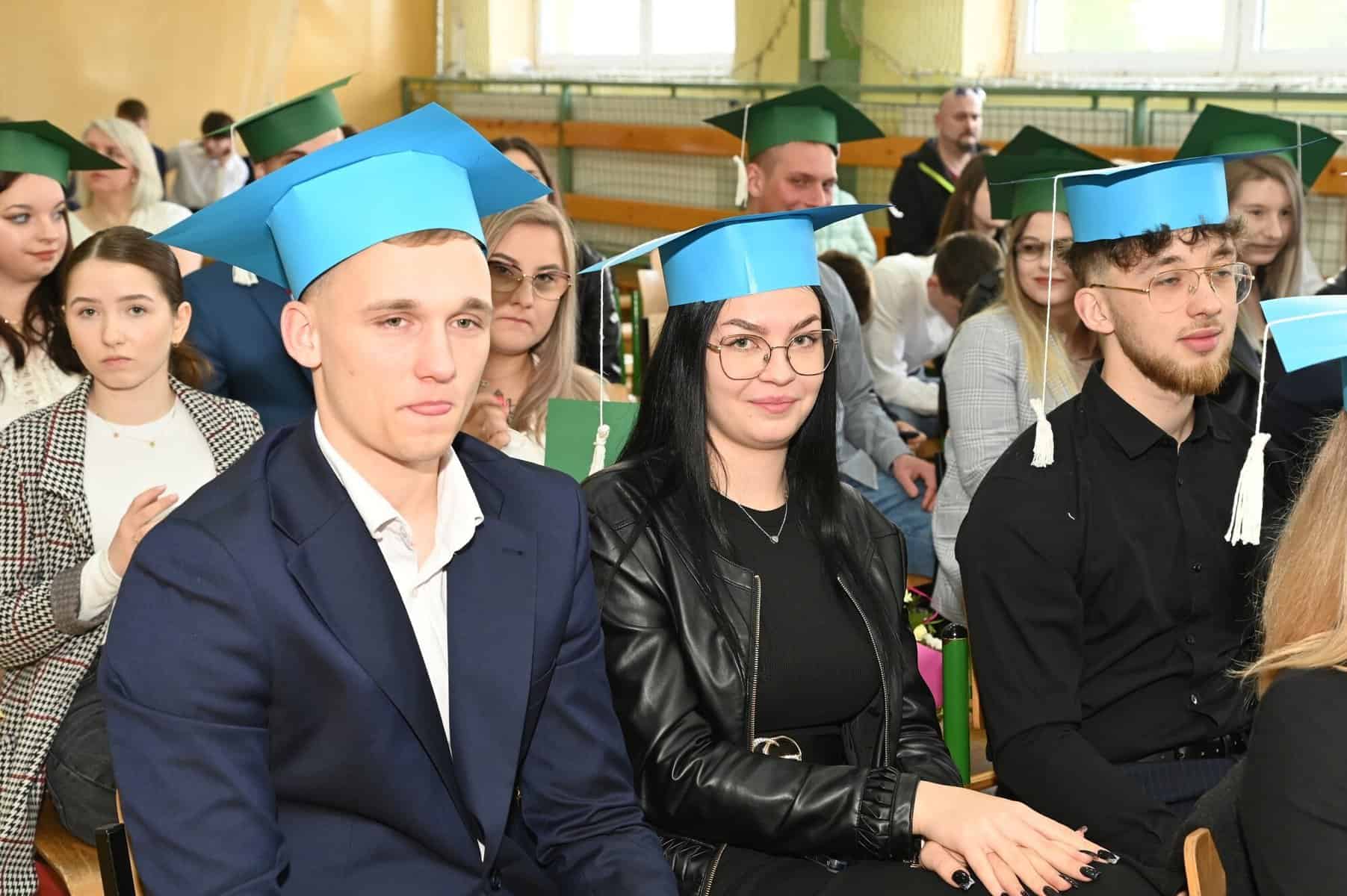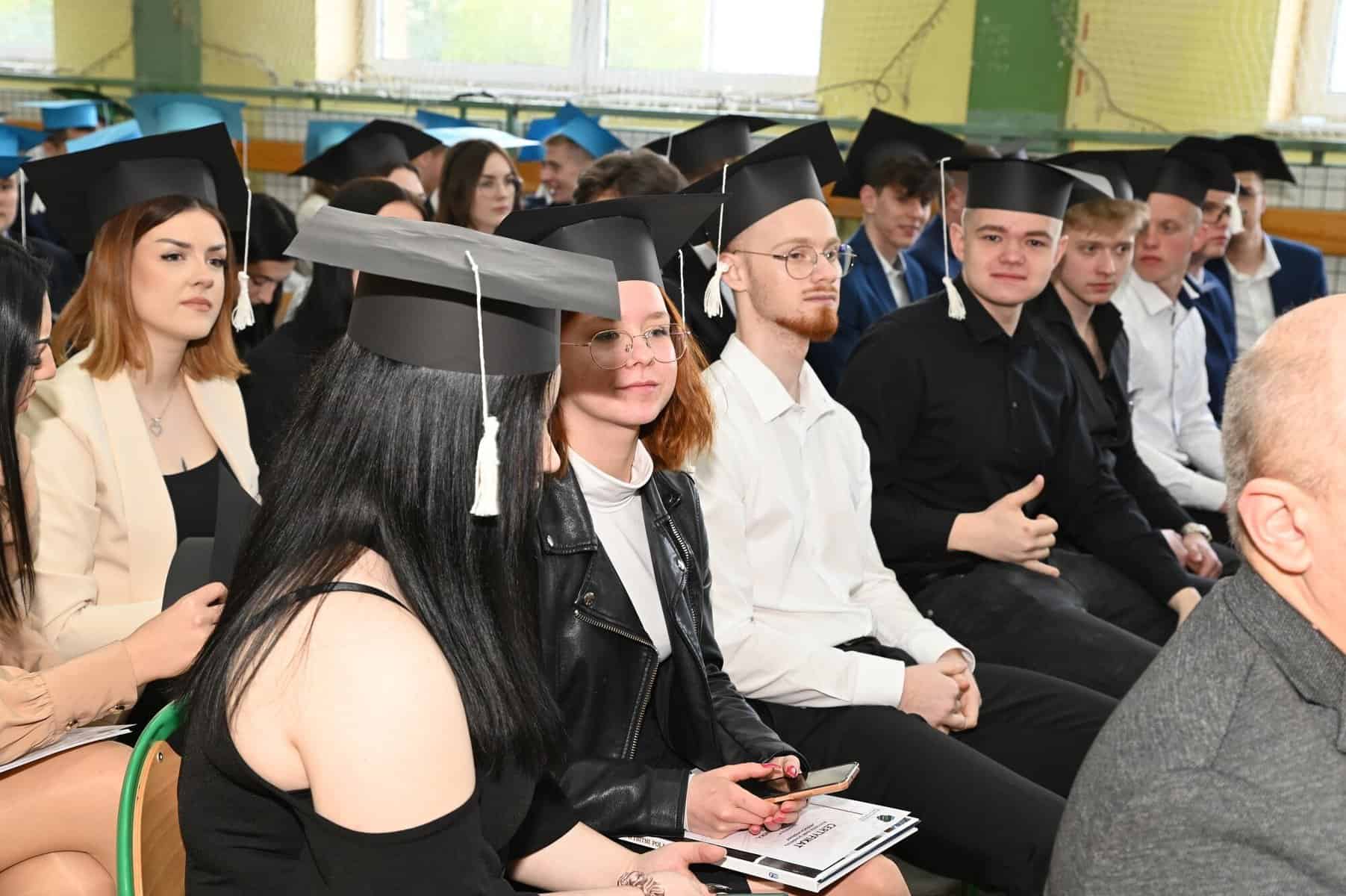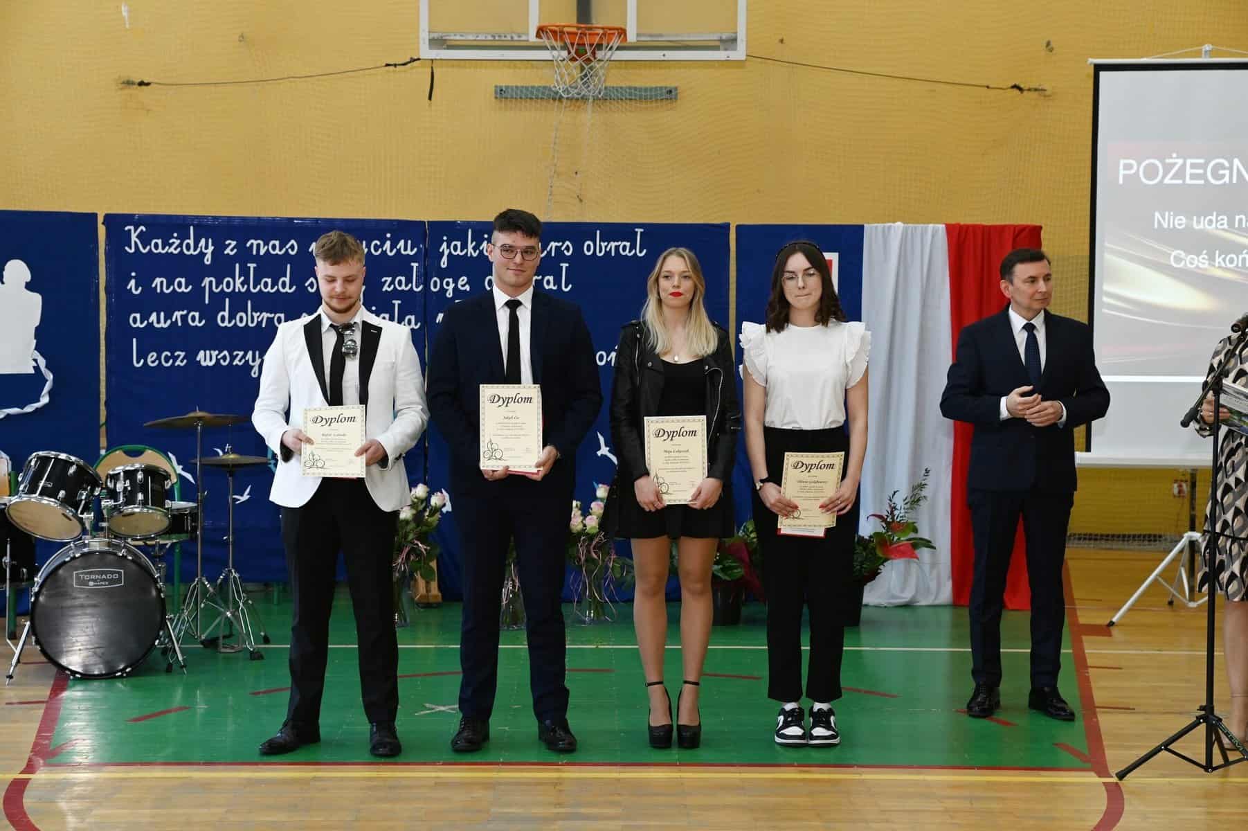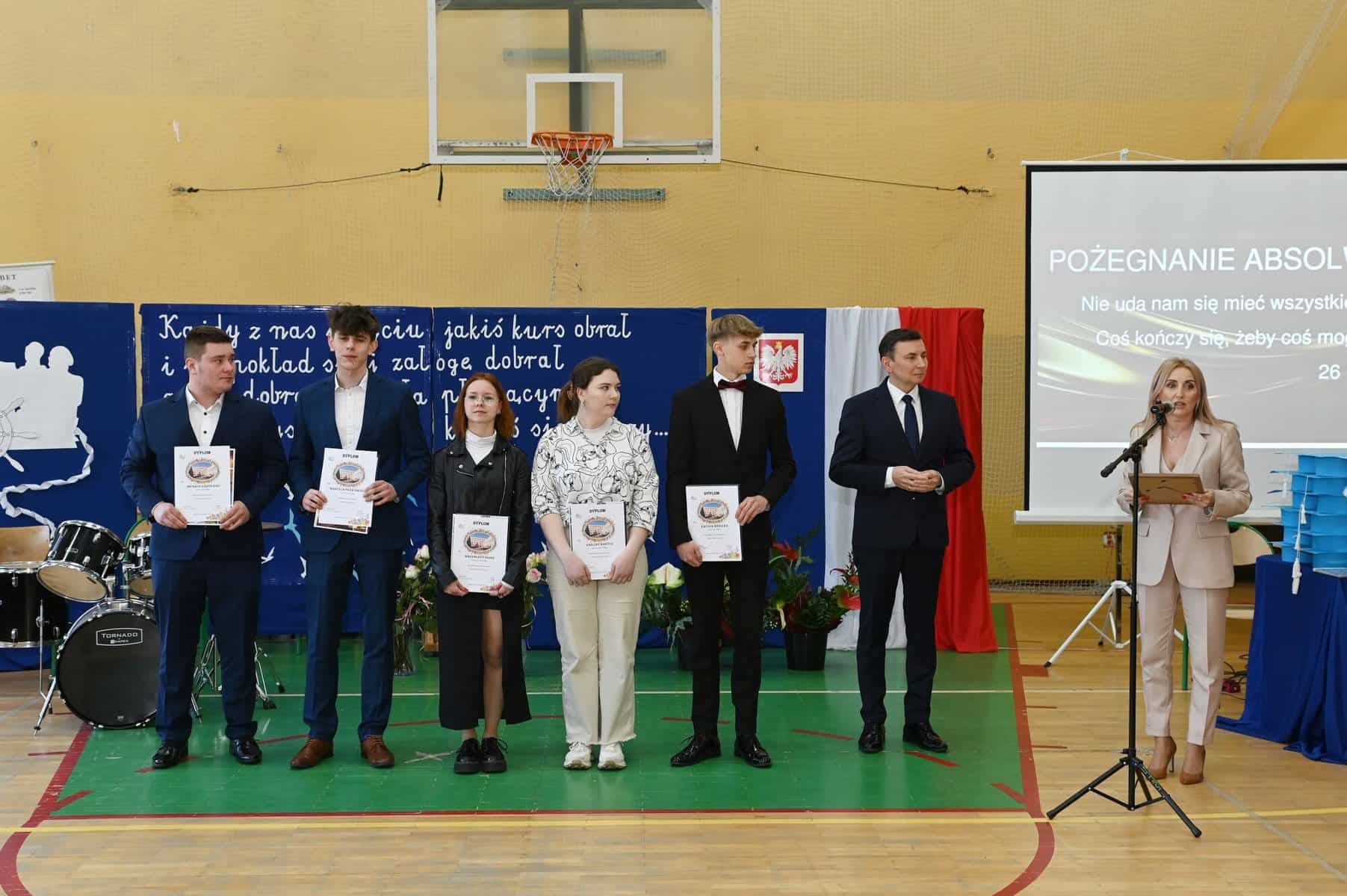 Świadectwa ukończenia szkoły średniej odebrali w piątek, 26 kwietnia, uczniowie klas: 5 Tap – technik logistyk, (wych. Brygida Stasiak), 5 Tbp – technik logistyk/technik budownictwa (wych. Iwona Skrzypkowska) i Liceum Ogólnokształcącego dla dorosłych (opiekun Arkadiusz Miśkiewicz).