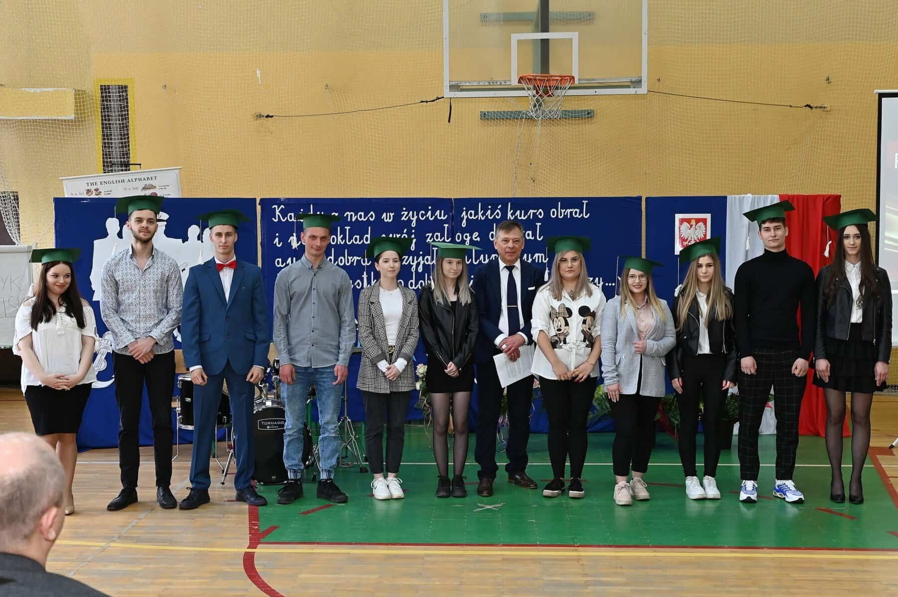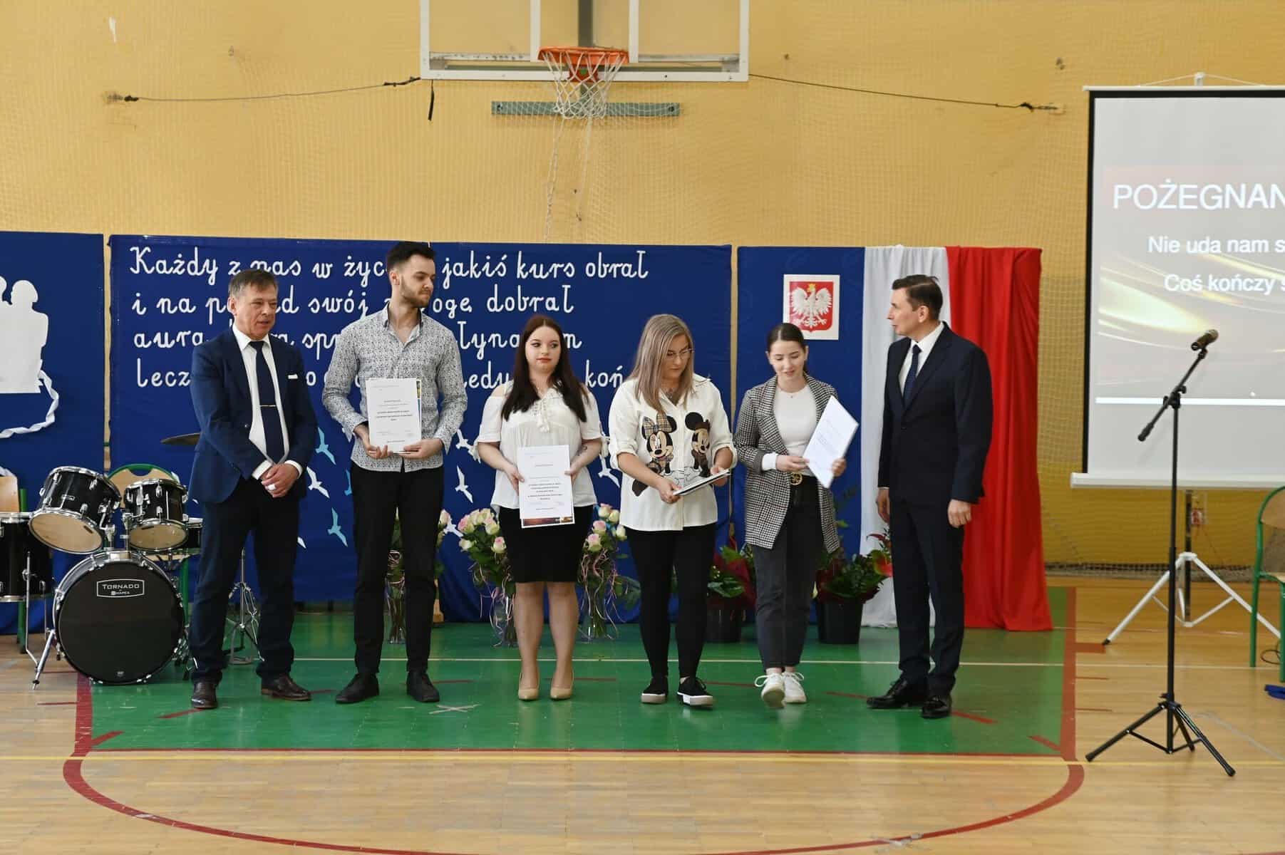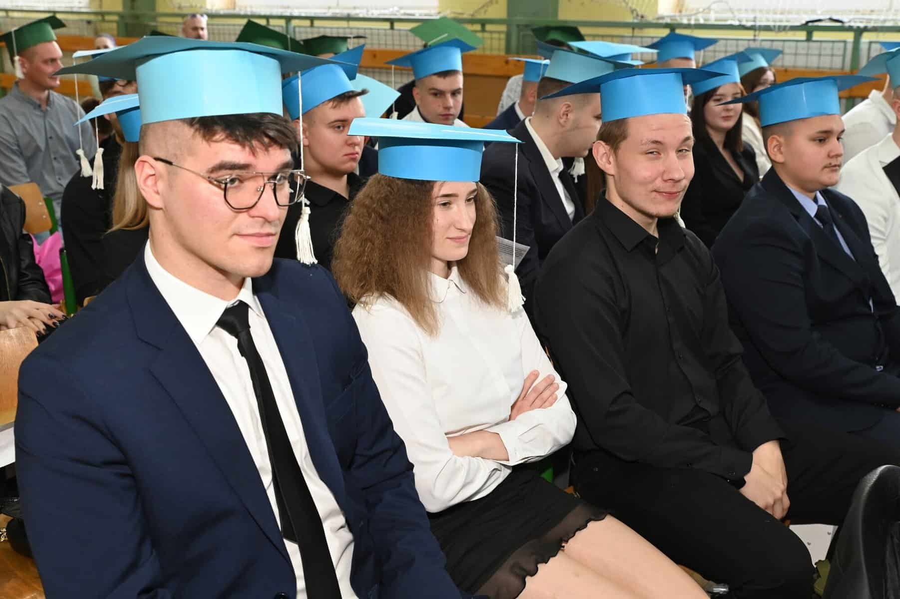 Świadectwa ukończenia szkoły średniej odebrali w piątek, 26 kwietnia, uczniowie klas: 5 Tap – technik logistyk, (wych. Brygida Stasiak), 5 Tbp – technik logistyk/technik budownictwa (wych. Iwona Skrzypkowska) i Liceum Ogólnokształcącego dla dorosłych (opiekun Arkadiusz Miśkiewicz).