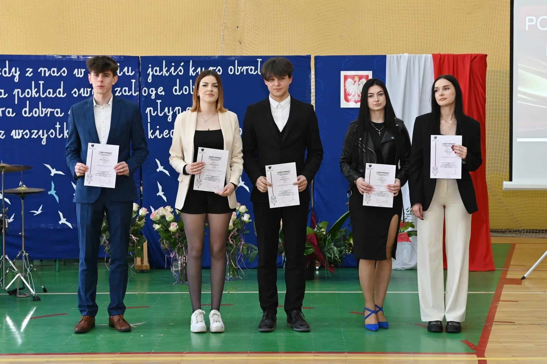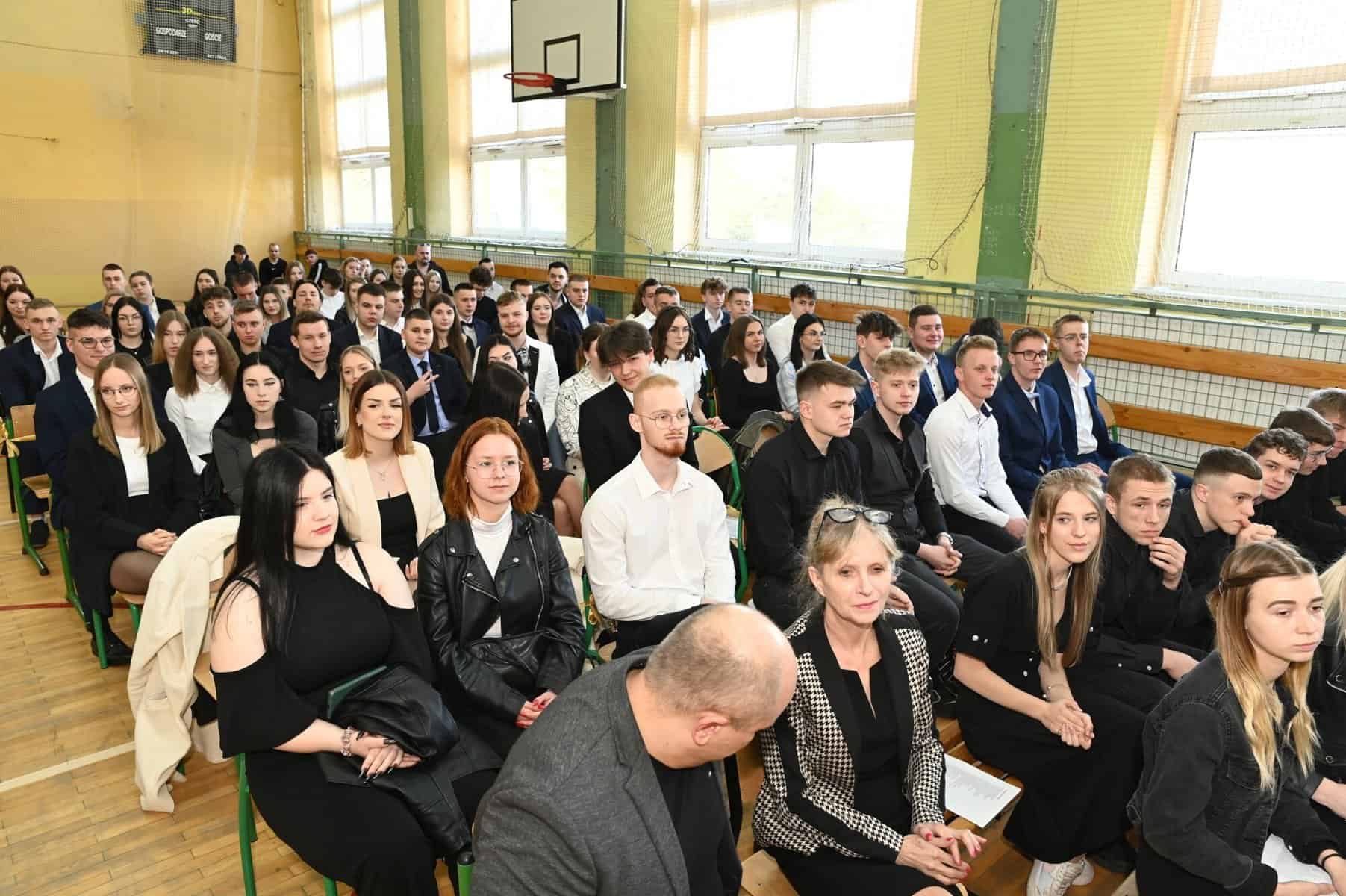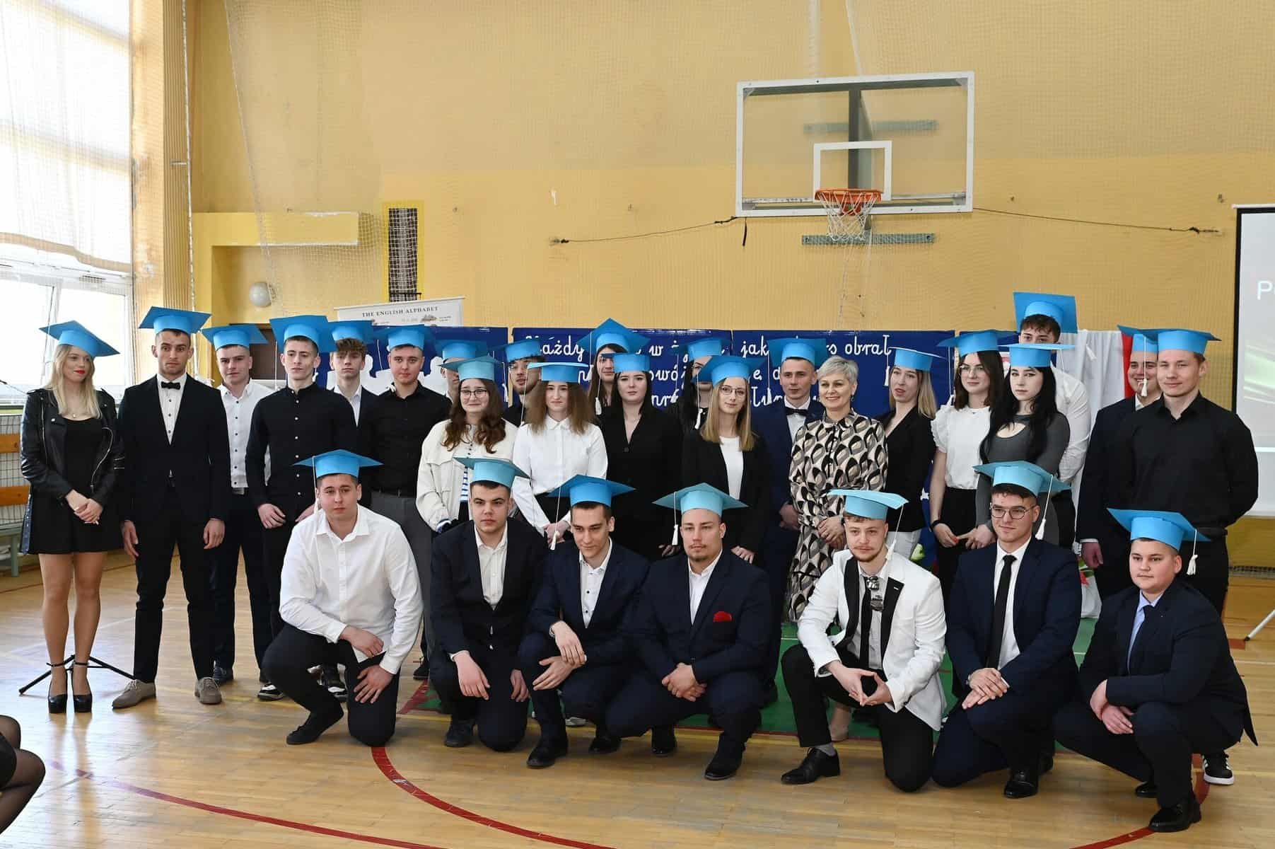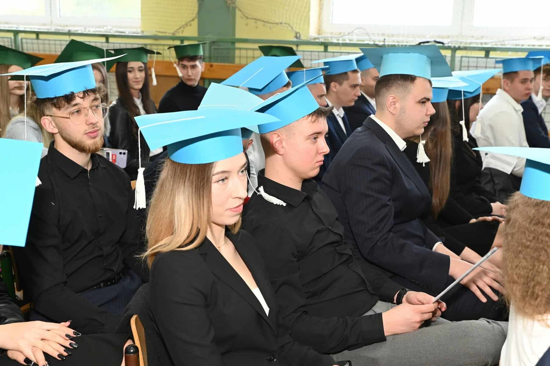 Świadectwa ukończenia szkoły średniej odebrali w piątek, 26 kwietnia, uczniowie klas: 5 Tap – technik logistyk, (wych. Brygida Stasiak), 5 Tbp – technik logistyk/technik budownictwa (wych. Iwona Skrzypkowska) i Liceum Ogólnokształcącego dla dorosłych (opiekun Arkadiusz Miśkiewicz).