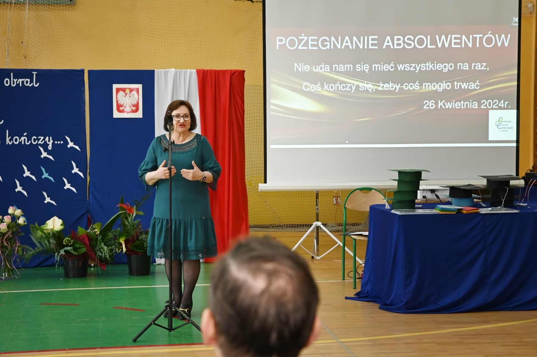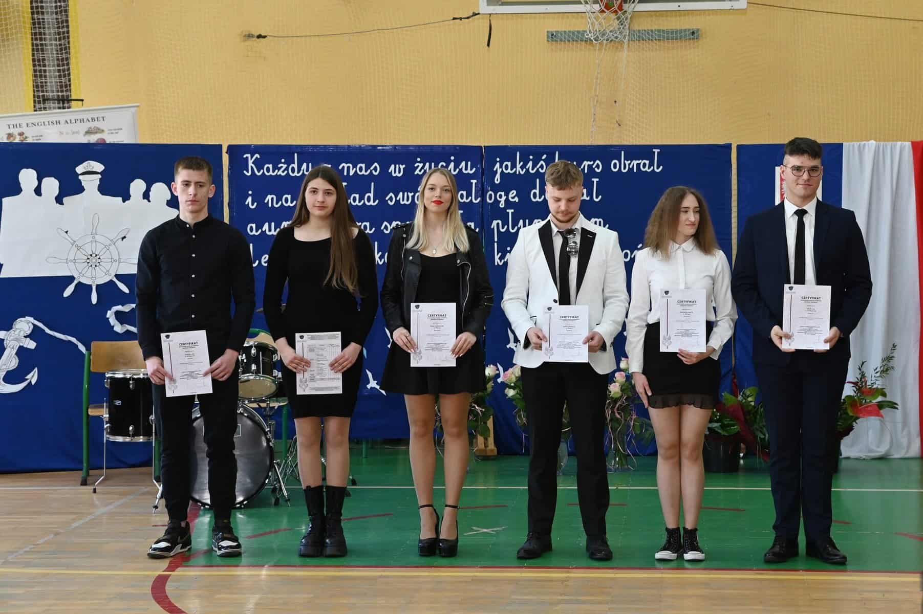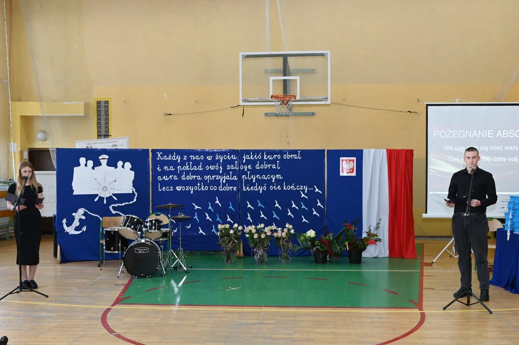Podziękowania dyrektor kierował do grona pedagogicznego, wychowawców za przekazaną wiedzę, ale również do rodziców za dobry kontakt ze szkołą i współudział w procesie wychowawczym. „Każdy z nas w życiu jakiś kurs obrał i na pokład swój załogę dobrał. Aura dobra sprzyjała płynącym, lecz wszystko co dobre kiedyś się kończy” – głosiła sentencja umieszczona na dekoracji towarzyszącej uroczystości.