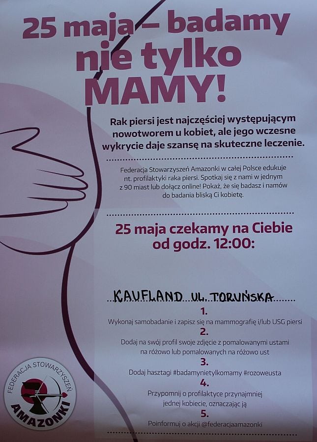 Ogólnopolska akcja „Badamy nie tylko mamy” odbędzie się w sobotę, 25 maja, o godzinie 12:00 pod hipermarketem Kaufland przy ul. Toruńskiej.