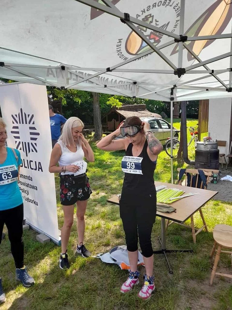 Sobotnie (25 maja) zawody nordic walking w Obliwicach, odbywające się w ramach XII Grand Prix Nordic Walking o Puchar Gminy Nowa Wieś Lęborska, były dla lęborskich policjantów okazją do zaprezentowania swojej pracy. Mundurowi przygotowali stoisko przy którym rozdawali uczestnikom tego wydarzenia elementy odblaskowe, zwiększające bezpieczeństwo na drodze. Kto chciał, mógł przymierzyć narkogogle i na własnej skórze doświadczyć zaburzeń percepcji wynikających ze skutków zażywania środków odurzających. Policjanci opowiadali o swojej pracy, a osobom zainteresowanym służbą w Policji przekazywali informacje dotyczące procesu rekrutacji.