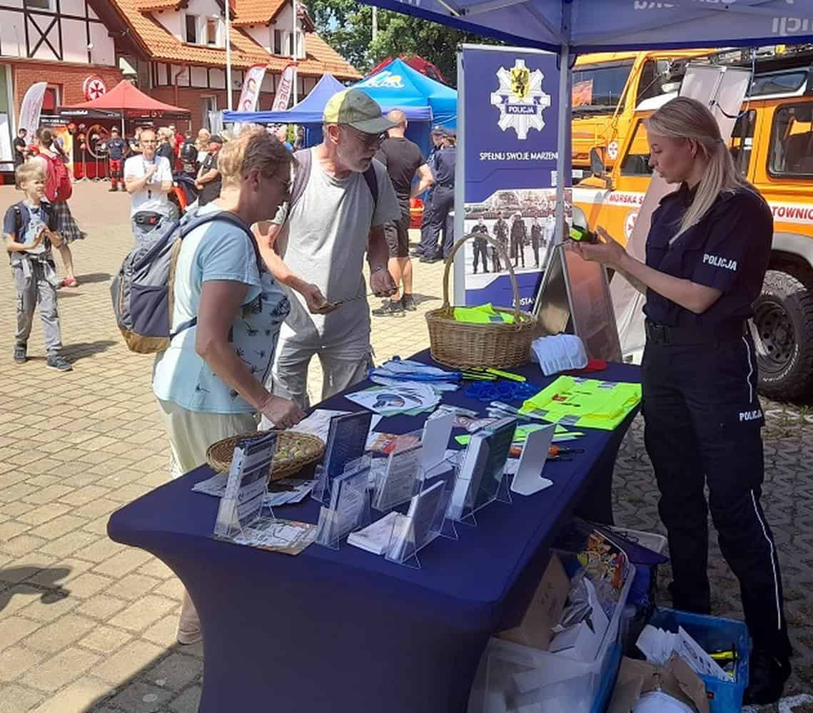 Funkcjonariusze przygotowali dla odwiedzających wiele atrakcji. Mundurowi zaprezentowali sprzęt, jaki na co dzień wykorzystują, realizując swoje zadania na rzecz zapewnienia bezpieczeństwa i porządku publicznego. Fani motoryzacji mogli obejrzeć policyjne pojazdy, Mobilne Centrum Pomocy Ofiarom Przestępstw czy oznakowane radiowozy i motocykle. Mundurowi opowiadali o szeroko pojętym bezpieczeństwie i prowadzili o tej tematyce konkursy z nagrodami. Wszyscy odwiedzający stoisko policyjne otrzymywali elementy odblaskowe i drobne upominki związane m.in. z bezpieczeństwem nad wodą i na drodze. Każdy zainteresowany wstąpieniem w nasze szeregi mógł dowiedzieć się, na czym polega służba w policji i jakie wymogi należy spełniać, aby w przyszłości przywdziać policyjny mundur.